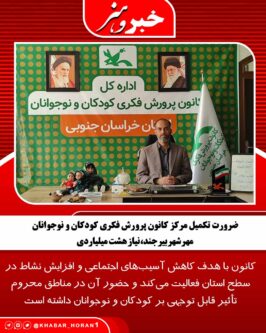 ضرورت تکمیل مرکز کانون پرورش فکری کودکان و نوجوانان مهرشهربیرجند،نیاز هشت میلیاردی