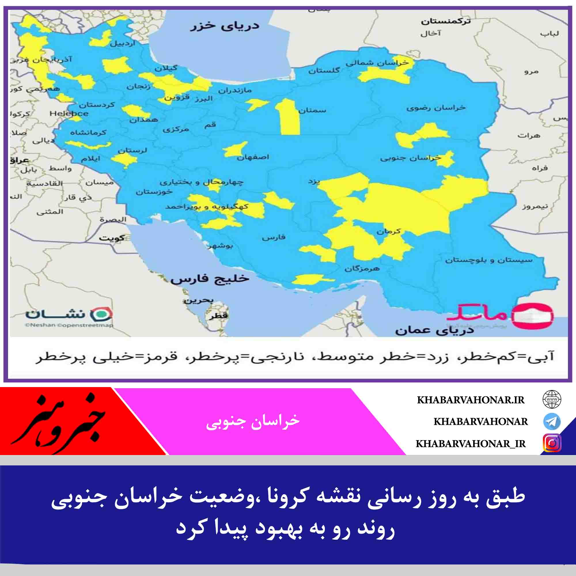 ?شهرستان ها طبس و نهبندان از وضعیت نارنجی و شهرستان های سربیشه و درمیان از وضعیت زرد خارج شدند، اما شهرستان های بیرجند و فردوس همچنان در وضعیت زرد قرار دارند.
