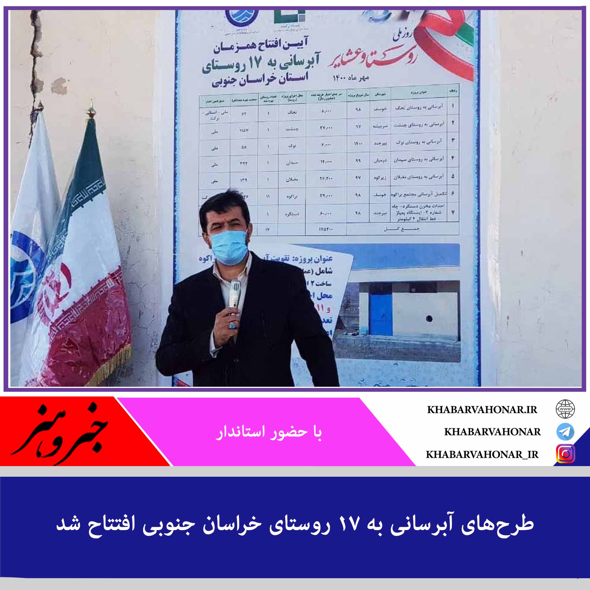 طرحهای آبرسانی به ۱۷ روستای خراسان جنوبی بهطور همزمان با حضور استاندار و جمعی از مسوولان در شهرستان خوسف به بهرهبرداری رسید.