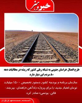 طرح اتصال خراسان جنوبی به شبکه ریلی کشور که ریشه در مطالبات دهه ۸۰ مردم این دیار دارد، اکنون در آستانه چهل و هشتمین فجر انقلاب اسلامی با تخصیص اعتباری کلان، به ایستگاههای پایانی خود نزدیک میشود.