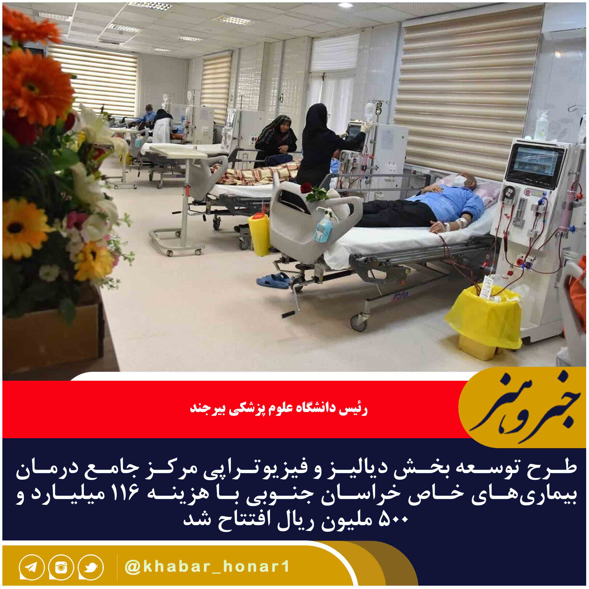 طرح توسعه بخش دیالیز و فیزیوتراپی مرکز جامع درمان بیماریهای خاص خراسان جنوبی با هزینه ۱۱۶ میلیارد و ۵۰۰ ملیون ریال افتتاح شد.