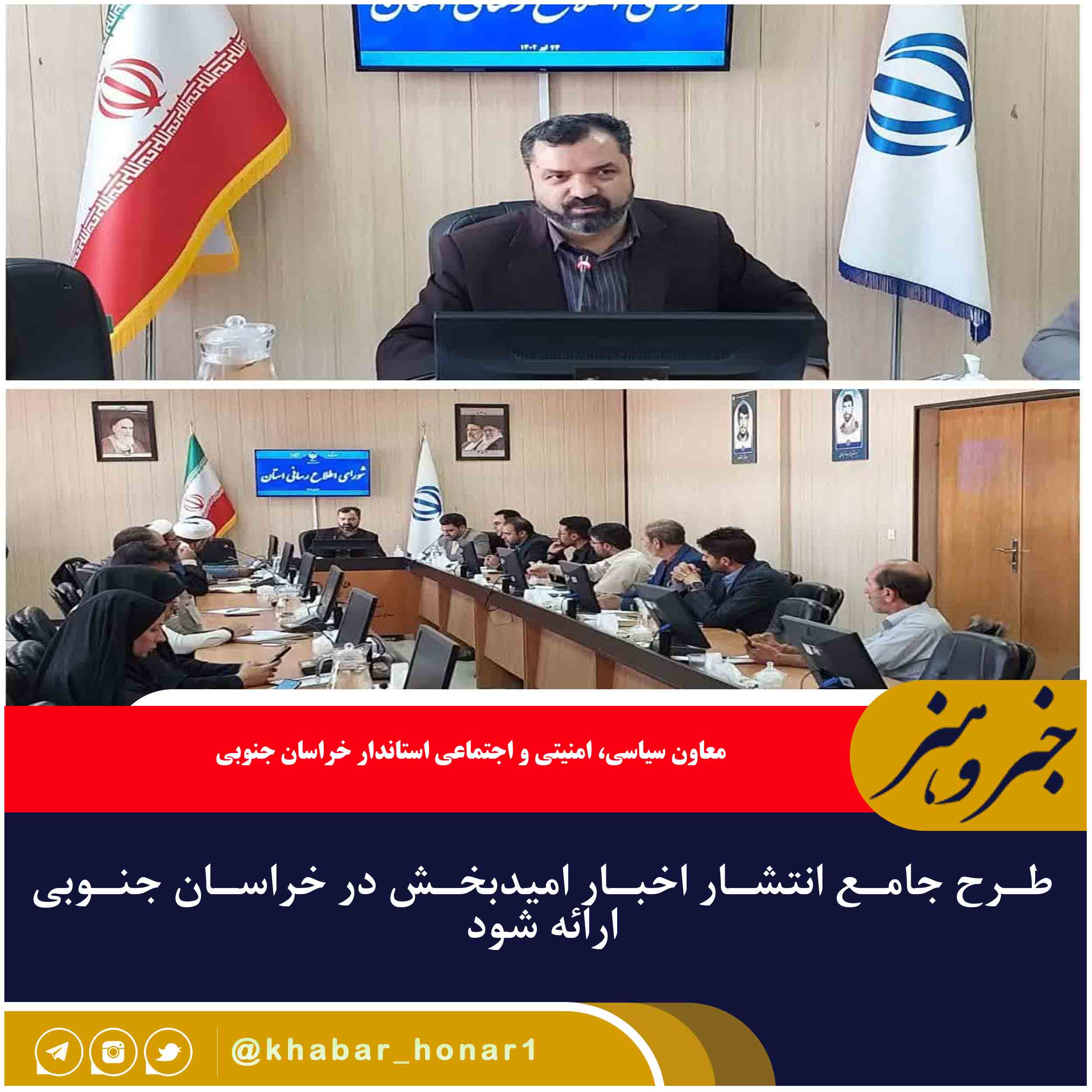 معاون سیاسی، امنیتی و اجتماعی استاندار خراسان جنوبی گفت: طرح جامع برای انتشار اخبار خوب و امیدبخش تحت عنوان “تا اوج” با محوریت اداره کل فرهنگ و ارشاد اسلامی و دبیرخانه شورای اطلاعرسانی استان تهیه شود.