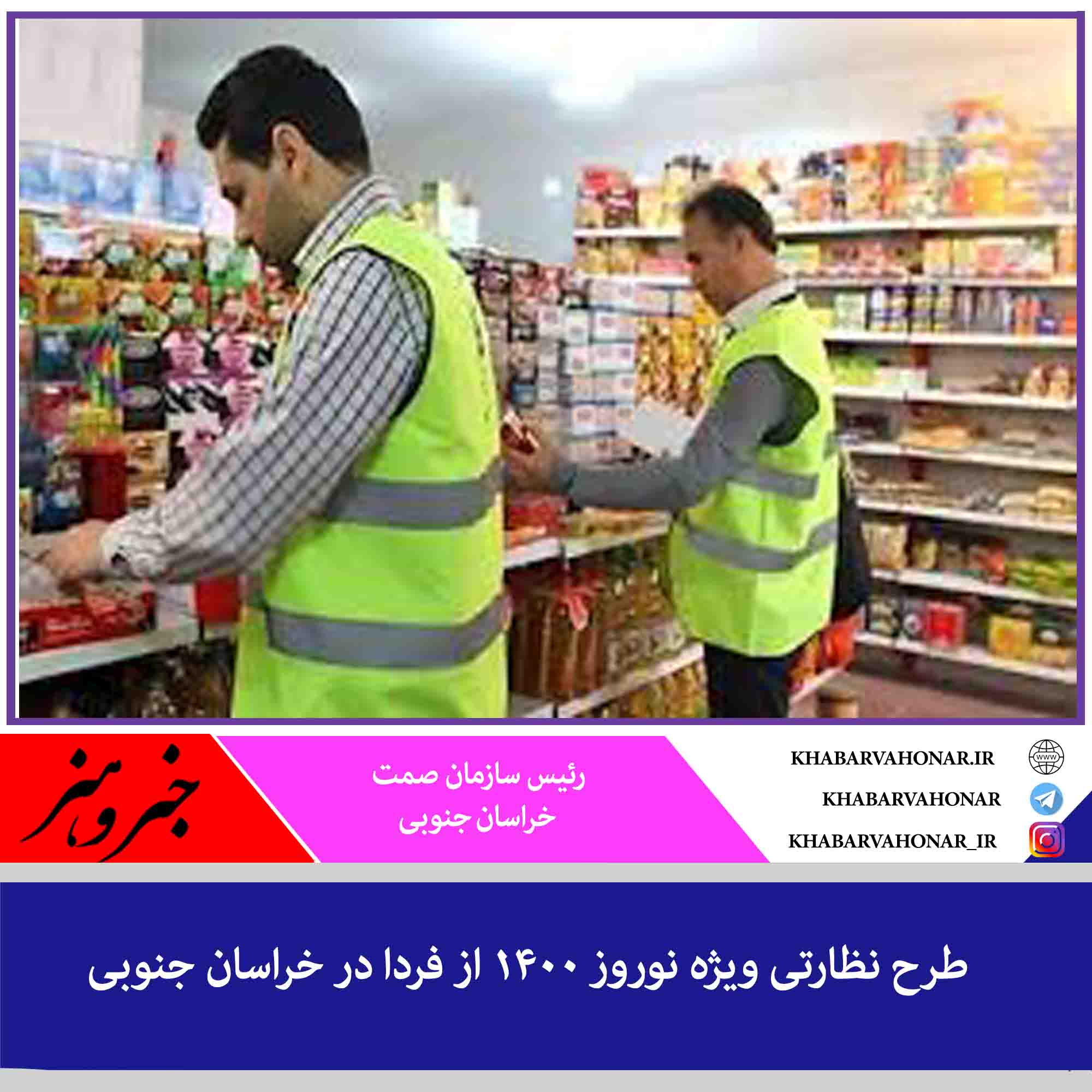 طرح ویژه بازرسی و نظارت بر بازار کالا و خدمات در ایام نوروز ۱۴۰۰ ، همزمان با سراسر کشور از ۱۵ بهمن در خراسان جنوبی آغاز می شود.