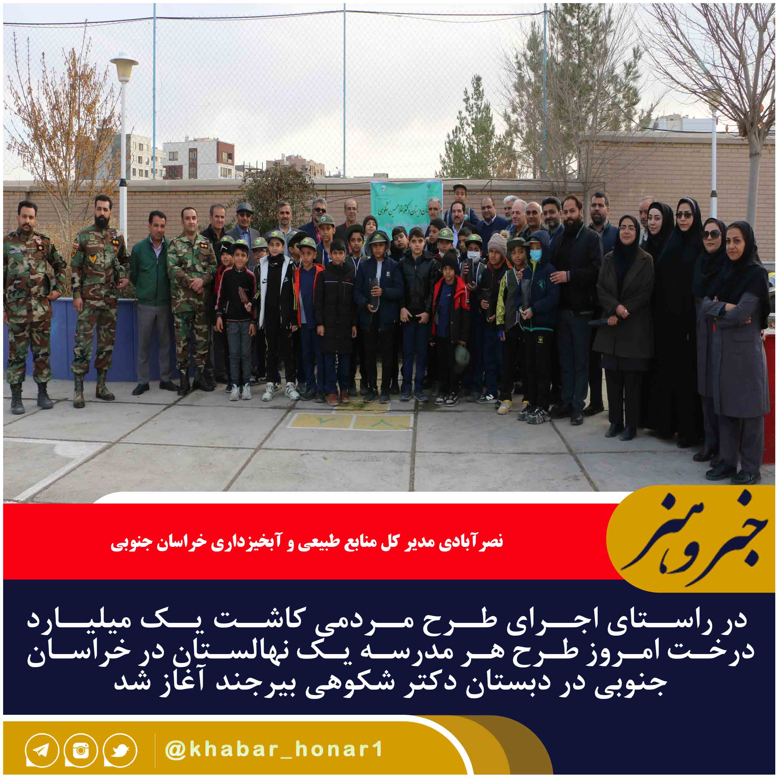 در راستای اجرای طرح مردمی کاشت یک میلیارد درخت امروز طرح هر مدرسه یک نهالستان در خراسان جنوبی در دبستان دکتر شکوهی بیرجند آغاز شد.