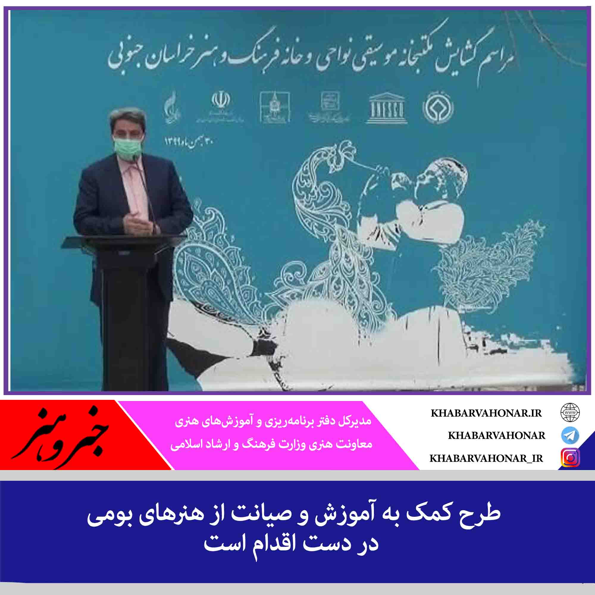 مدیرکل دفتر برنامهریزی و آموزشهای هنری معاونت هنری وزارت فرهنگ و ارشاد اسلامی گفت: طرحی با عنوان «کمک به آموزش و صیانت از هنرهای بومی در معرض فراموشی» در وزارت فرهنگ و ارشاد اسلامی در حال برنامهریزی است.