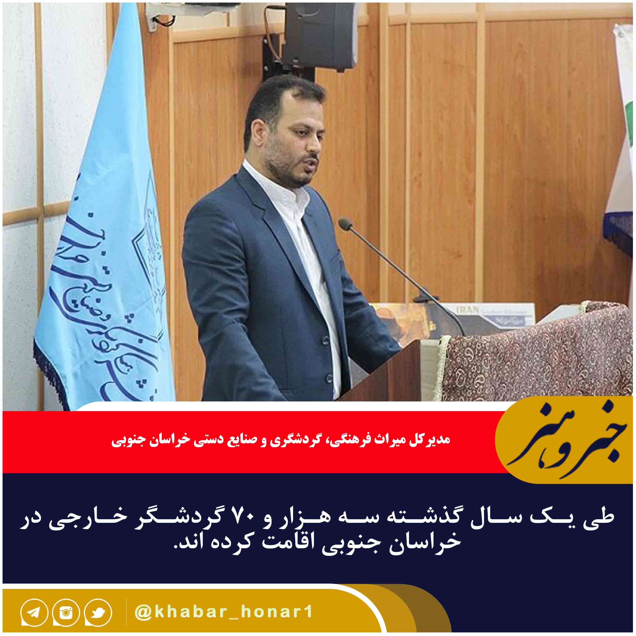 مدیرکل میراث فرهنگی، گردشگری و صنایع دستی خراسان جنوبی گفت: همچنین بر اساس آمارهای رسمی طی یک سال گذشته سه هزار و ۷۰ نفر گردشگر خارجی در استان اقامت داشتهاند که امیدواریم این رقم در سال پیش رو افزایش یابد.