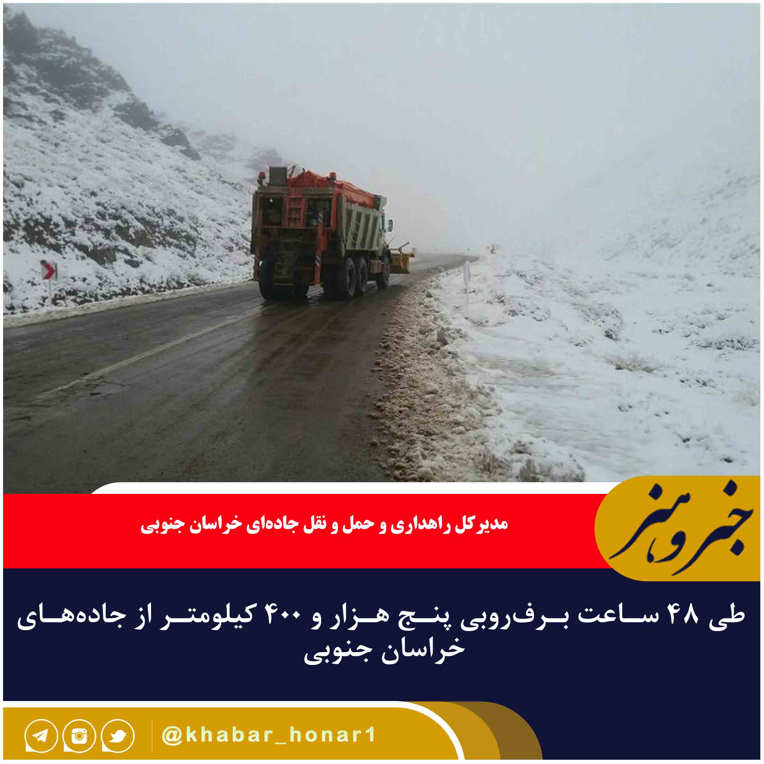 مدیرکل راهداری و حمل و نقل جادهای خراسان جنوبی گفت: طی ۴۸ پنج هزار و ۴۰۰ کیلومتر عملیات برفروبی در محورهای مواصلاتی این استان انجام شده است.