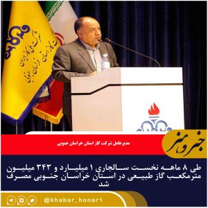 ، رحمان محمودی در تشریح این خبر گفت: طی ۸ ماهه نخست سالجاری در استان خراسان جنوبی در بخش های مختلف حدود ۱ میلیارد و ۳۴۳ میلیون متر مکعب گاز طبیعی مصرف شده است که نسبت به بازه مشابه سال گذشته شاهد افزایش مصرف ۰.۴ درصدی هستیم.