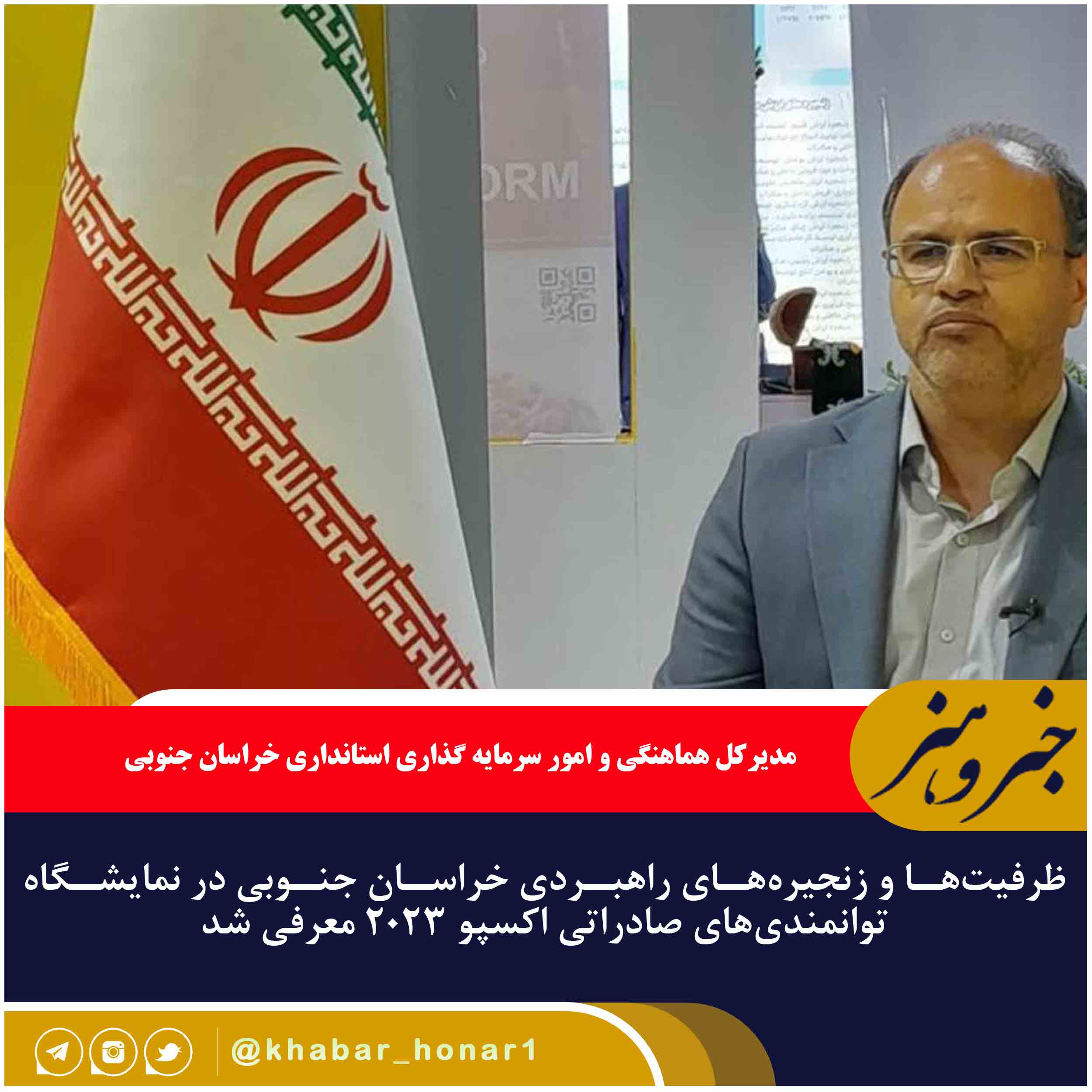 مدیرکل هماهنگی و امور سرمایه گذاری استانداری خراسان جنوبی ادامه داد: هدف از برپایی این نمایشگاه، ایجاد و توسعه بازارهای صادراتی محصولات ایرانی با تمرکز بر کشورهای منطقه و شرق آسیا، آفریقای جنوبی و آمریکای لاتین بود که استان خراسان جنوبی با محوریت معاونت هماهنگی امور اقتصادی استانداری و با مشارکت اتاق تعاون، اتاق بازرگانی، منطقه ویژه اقتصادی بیرجند و همچنین دستگاههای اجرایی مرتبط با حوزه اقتصادی شامل صنعت، معدن و تجارت، جهاد کشاورزی، میراث فرهنگی، گردشگری و صنایع دستی و امور اقتصادی و دارایی در این نمایشگاه حضور یافت.