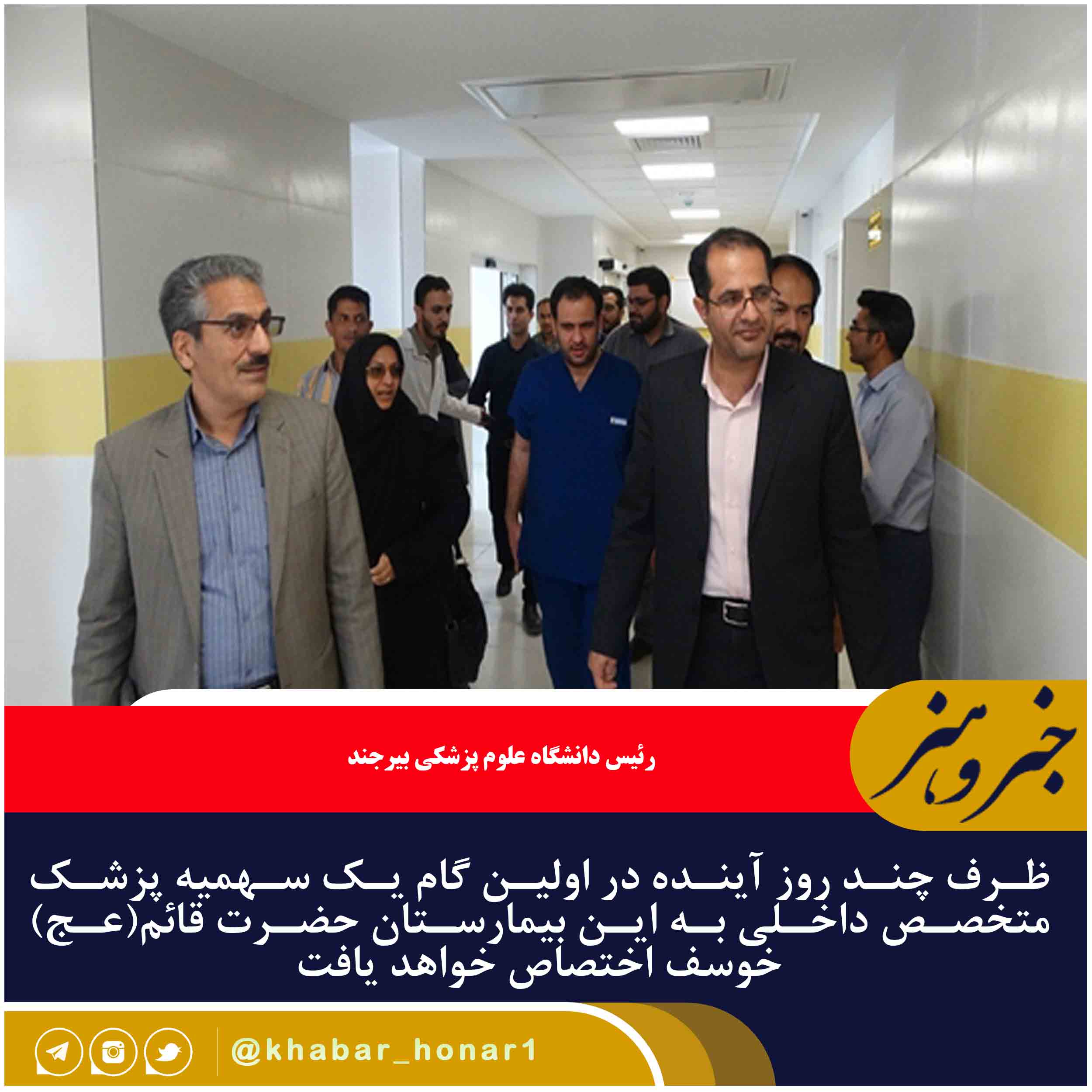 رئیس دانشگاه علوم پزشکی بیرجند به همراه مهندس شریف زاده سرپرست معاونت توسعه مدیریت و منابع دانشگاه پیش از ظهر امروز به صورت سرزده از بیمارستان حضرت قائم (عج) خوسف بازدید کرد.