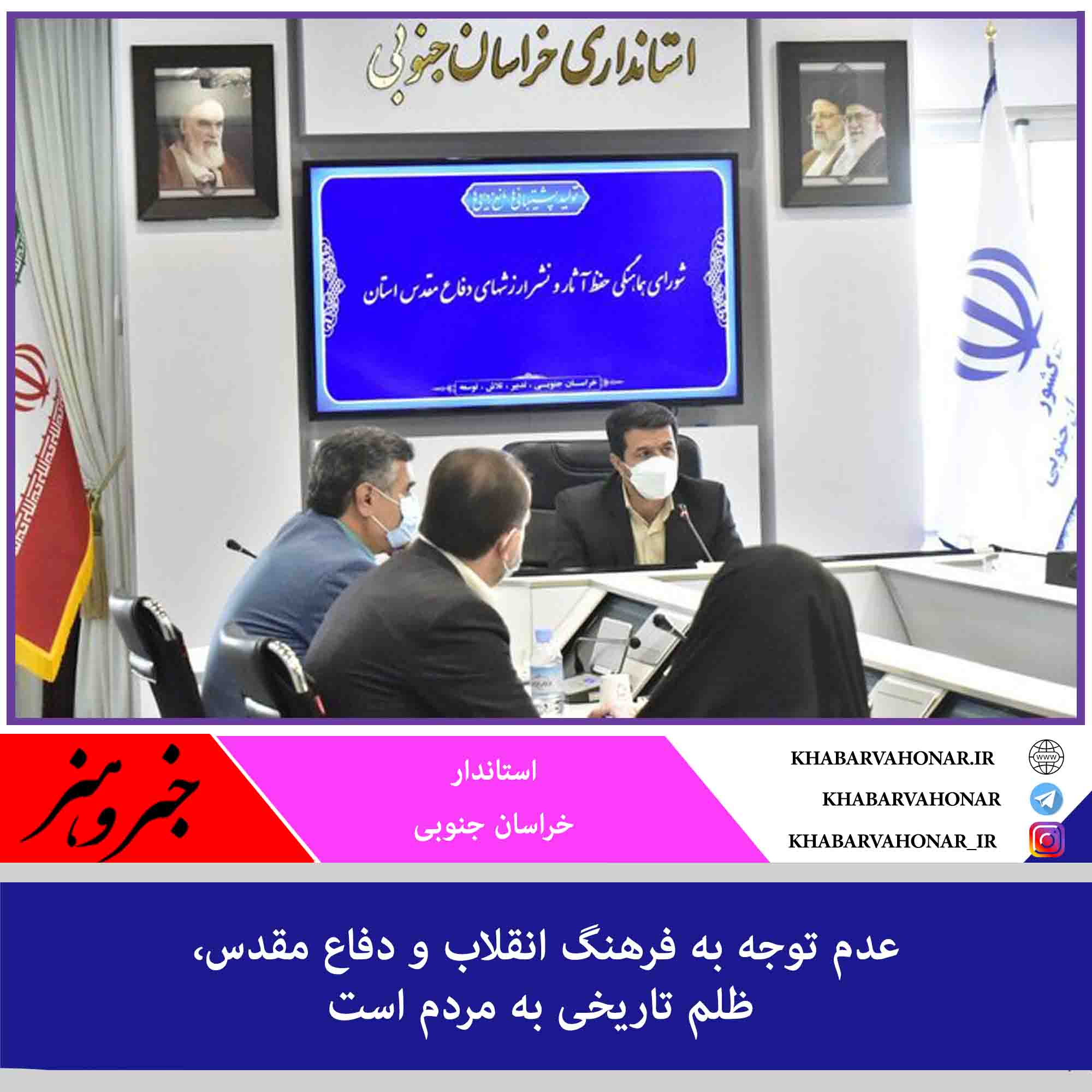 استاندار خراسان جنوبی گفت: عدم توجه به فرهنگ انقلاب و دفاع مقدس، ظلم تاریخی در حق مردم ایران اسلامی است.
