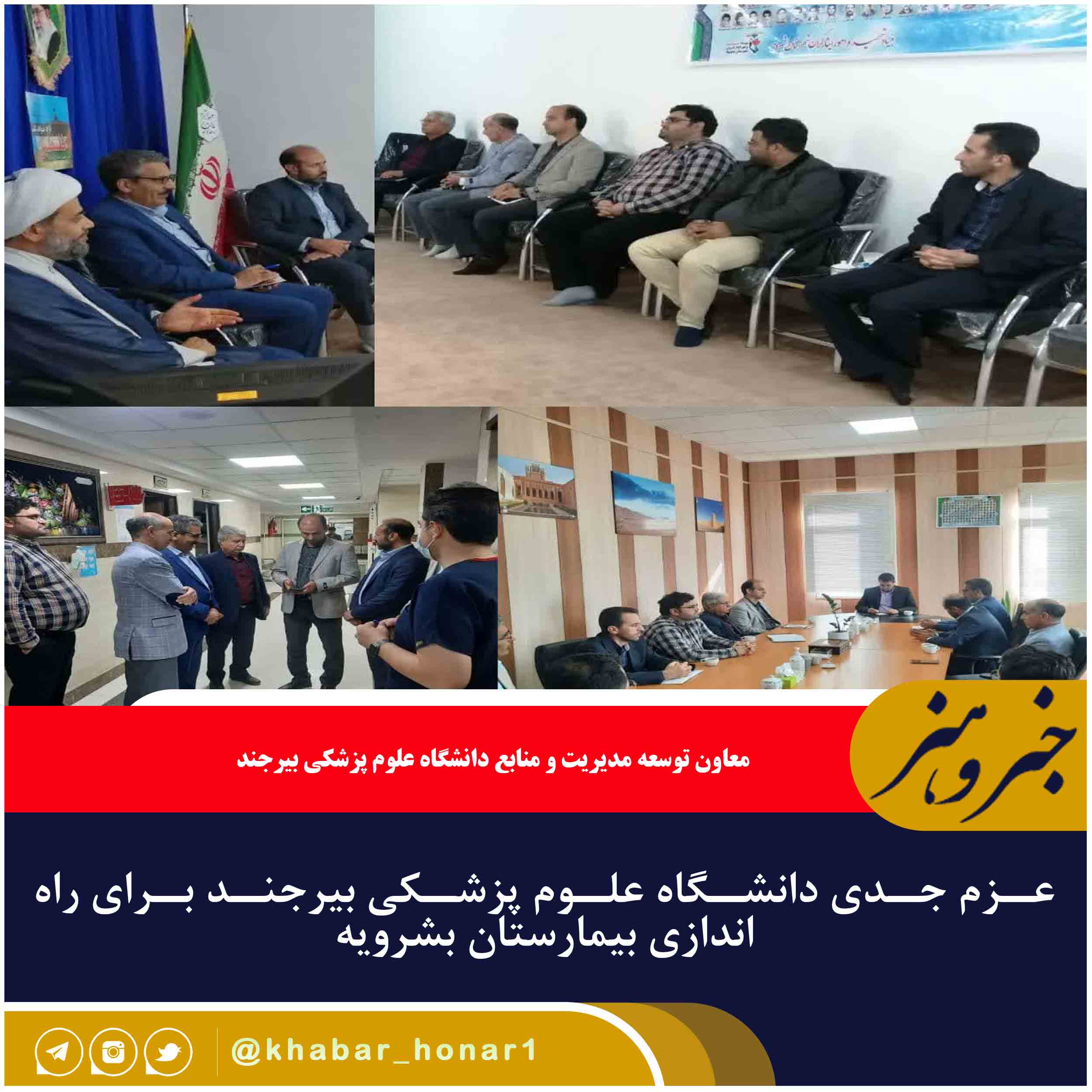 ?مهندس شریف زاده معاون توسعه مدیریت و منابع دانشگاه علوم پزشکی بیرجند در این دیدار از همراهی و همدلی مسئولین بشرویه با شبکه بهداشت و درمان این شهرستان در خصوص تسریع در انجام هماهنگی های لازم جهت راه اندازی بیمارستان قدردانی کرد و گفت: بر اساس تصمیماتی که در دانشگاه علوم پزشکی بیرجند گرفته شده است، قطعاً از تمام پتانسیل خود برای راه اندازی هرچه سریعتر این بیمارستان استفاده خواهیم کرد، تا مردم عزیز این منطقه بتوانند به زودی از ارائه خدمات در این مرکز درمانی بهره مند شوند.