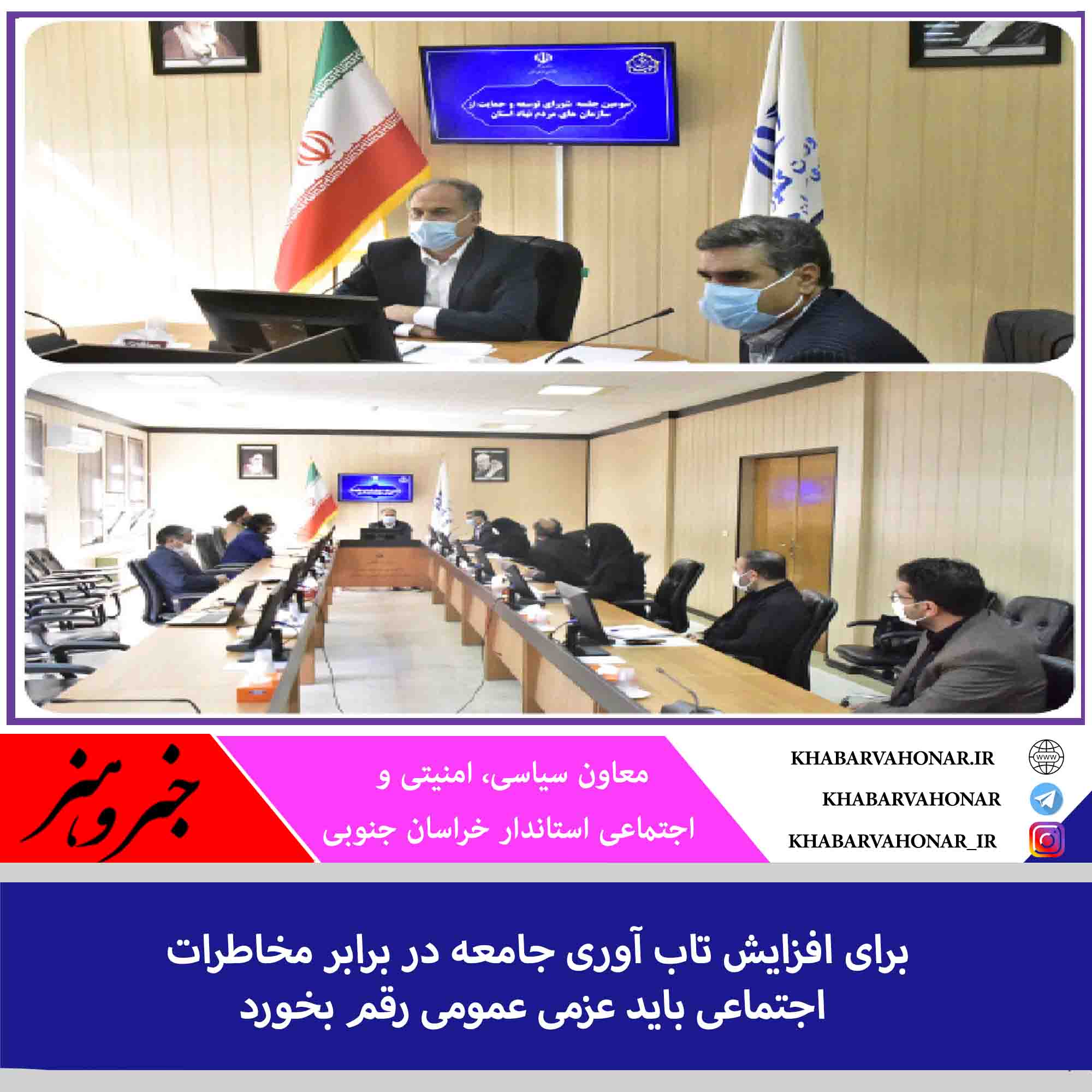 ?معاون سیاسی، امنیتی و اجتماعی استاندار خراسان جنوبی گفت: برای افزایش تاب آوری جامعه در برابر مخاطرات اجتماعی باید عزمی عمومی رقم بخورد.
