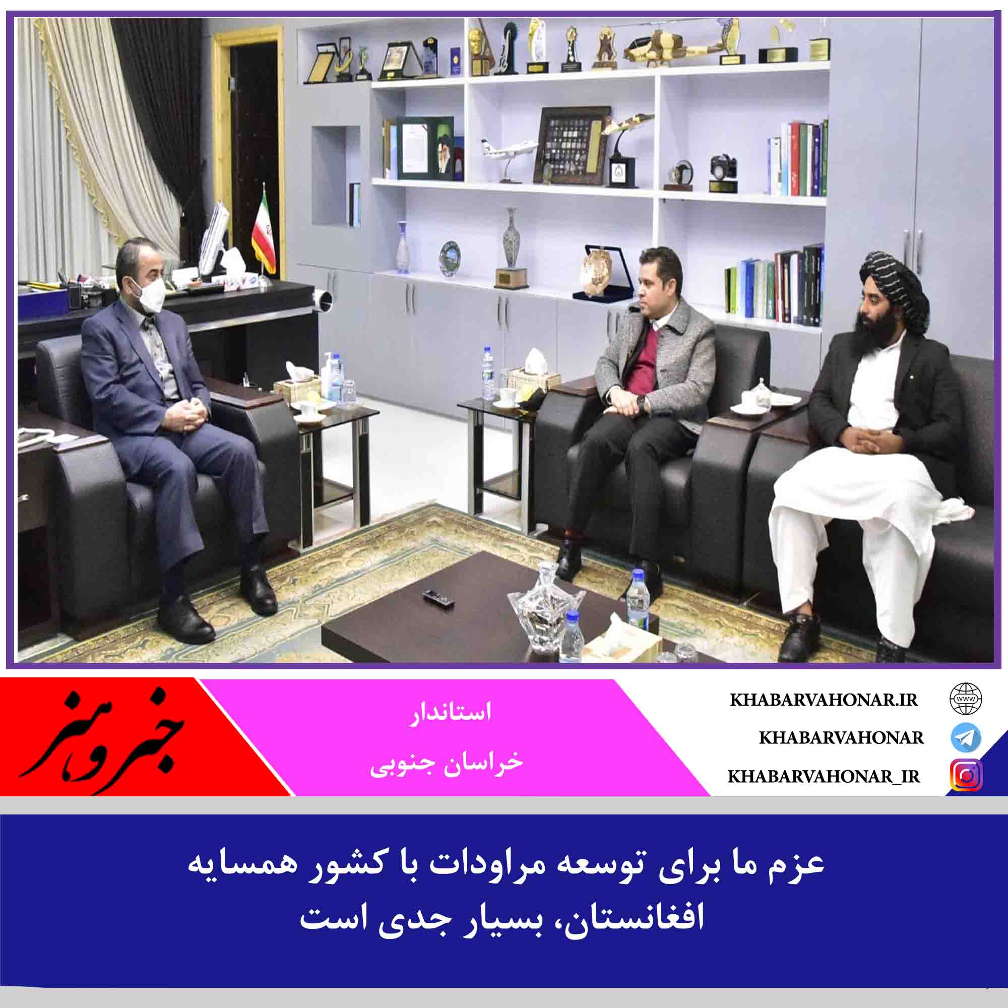 ?استاندار خراسان جنوبی تأکید کرد: عزم ما برای توسعه مراودات با کشور همسایه افغانستان، بسیار جدی است.