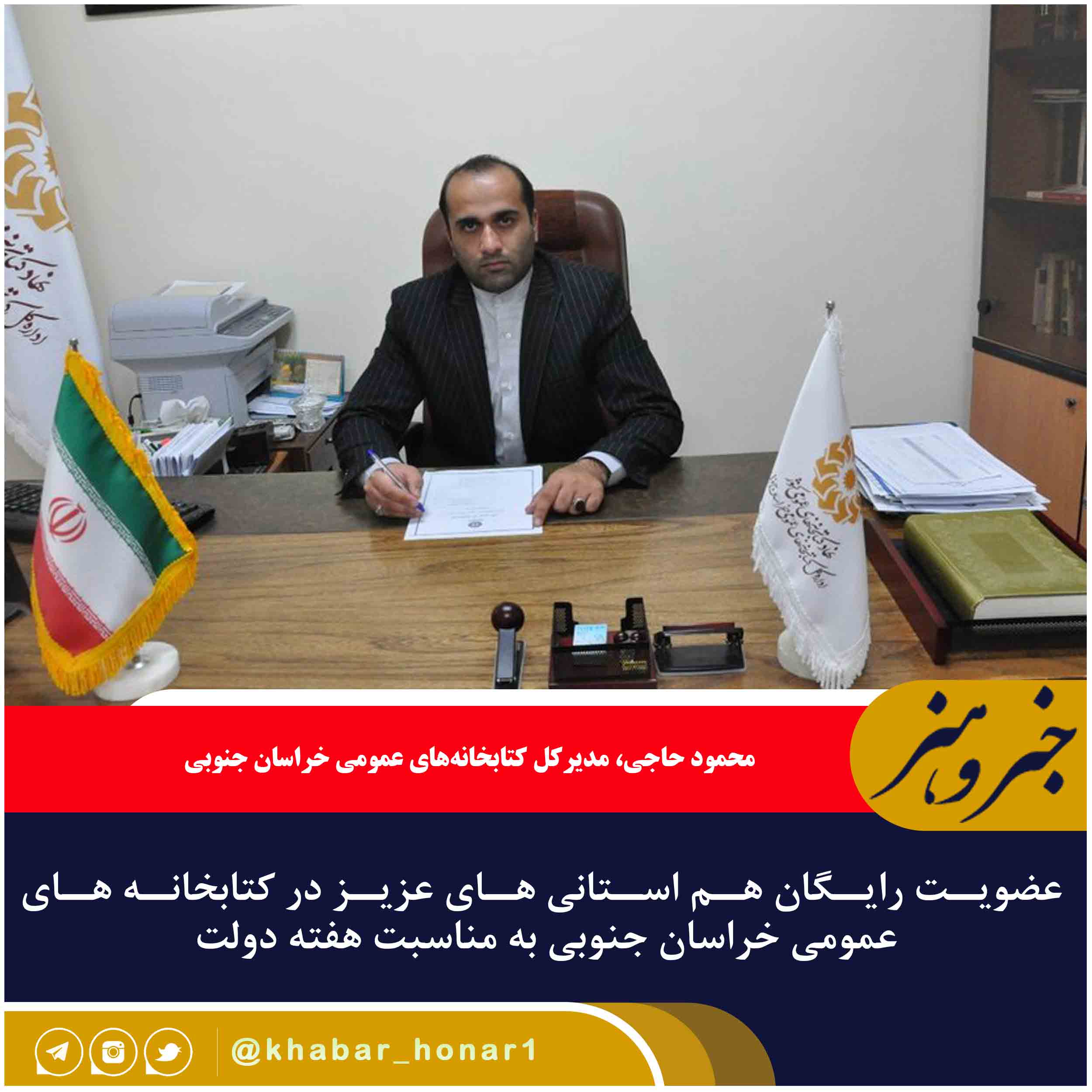 محمود حاجی، مدیرکل کتابخانههای عمومی خراسان جنوبی از عضویت رایگان در کتابخانه های عمومی استان در روز ۴ شهریور ماه خبر داد. حاجی ضمن بیان این نکته که ماهیت و اهداف کتابخانه های عمومی به گونه ای است که همه آحاد جامعه با هر گروه سنی می توانند به عضویت کتابخانه های عمومی در آیند، افزود: در روز ۴ شهریور ماه به مناسبت هفته دولت تمامی هم استانی های عزیز می توانند به مراجعه به آدرس Www.samanpl.ir از عضویت رایگان بهره مند گردند.مدیرکل کتابخانه های عمومی استان همچنین افزود : نظر به شیوع موج جدید بیماری کرونا و رعایت فاصله گذاری اجتماعی،کلیه هم استانی های عزیز می توانند با مراجعه به این آدرس الکترونیکی، کد عضویت رایگان کتابخانه دلخواه خود را دریافت نمایند. البته ضروری است پس از دریافت کد که به شماره همراه هر فرد ارسال خواهد شد ، تا مورخ ۱۷ شهریور ماه به شکل حضوری به کتابخانه مراجعه، و عضویت خود را قطعی نمایند.