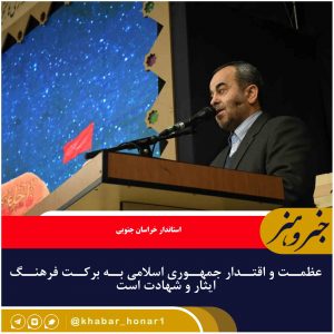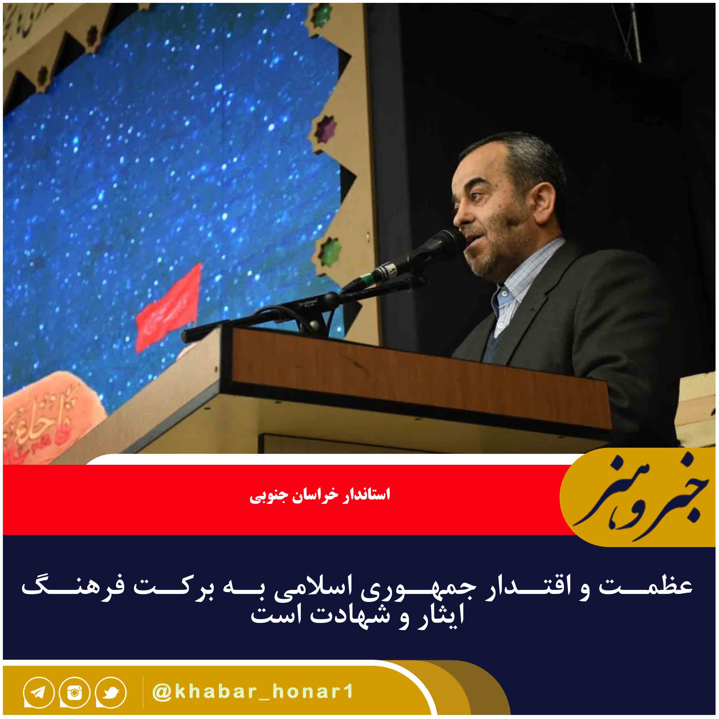 ?استاندار خراسان جنوبی گفت: عظمت و اقتدار جمهوری اسلامی به برکت فرهنگ ایثار و شهادت است.