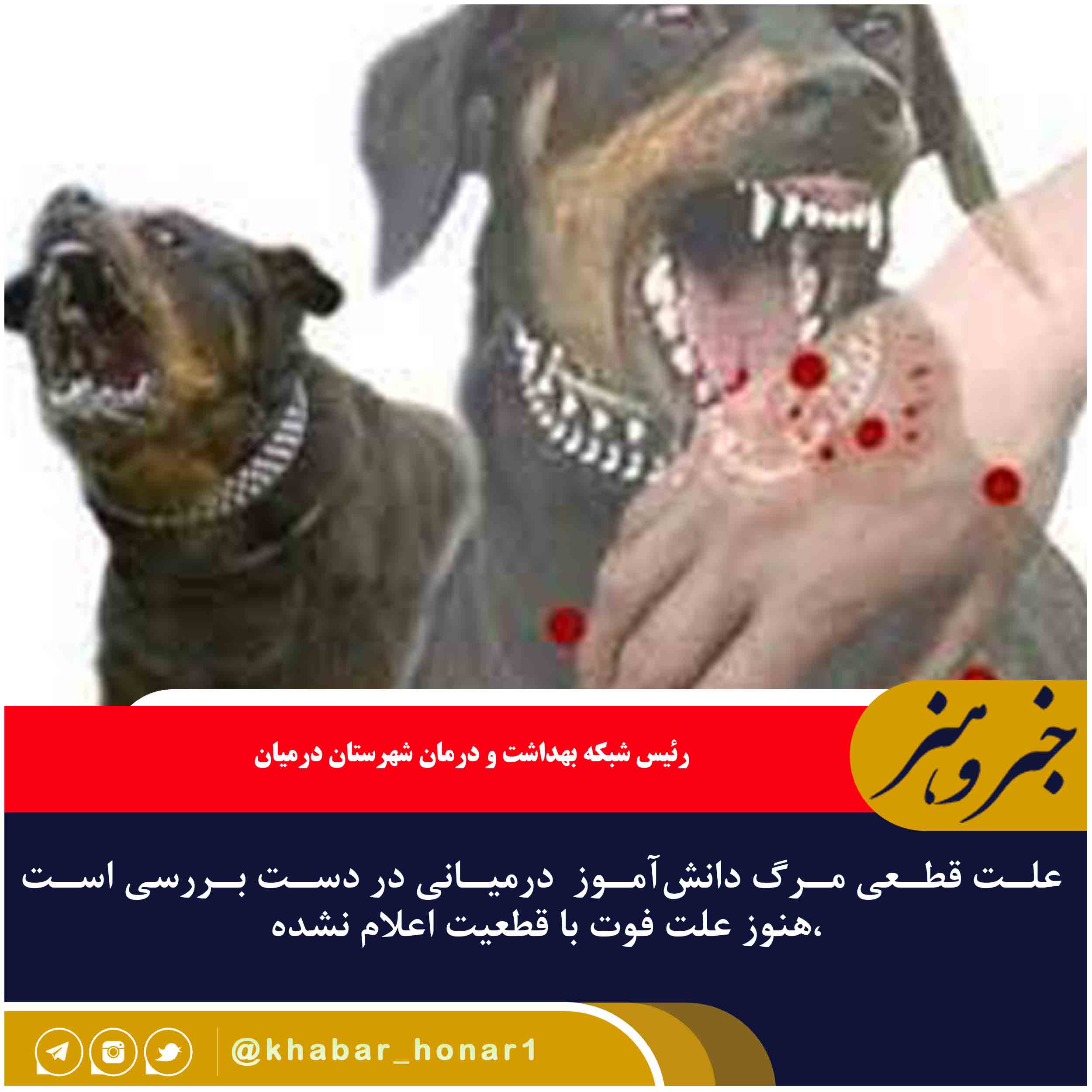 رئیس شبکه بهداشت و درمان شهرستان درمیان گفت: علت مرگ دانش‌آموز درمیانی که اسفندماه سال گذشته مورد حیوان گزیدگی قرار گرفته بود در دست بررسی است.