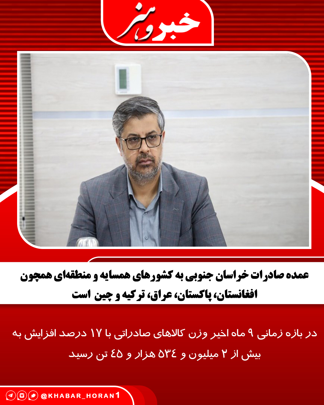 به گزارش خبر و هنر کوهگرد تصریح کرد: صادرات استان از طریق گمرکات بیرجند، ماهیرود و بازارچه مرزی ماهیرود با ثبت اظهارنامههای صادراتی به ارزش ۴۰۳ میلیون و ۱۸۹ هزار و ۸۶۴ دلار و وزن یک میلیون و ۸۴۰ هزار و ۲۱۸ تن، نشاندهنده رشد صادرات قطعی نسبت به سال گذشته است. عمده کالاهای صادر شده از طریق گمرکات استان انواع شمش و آهنآلات، سیمان، قیر، تخم مرغ، محصولات کشاورزی و مصنوعات پلاستیکی بوده است.