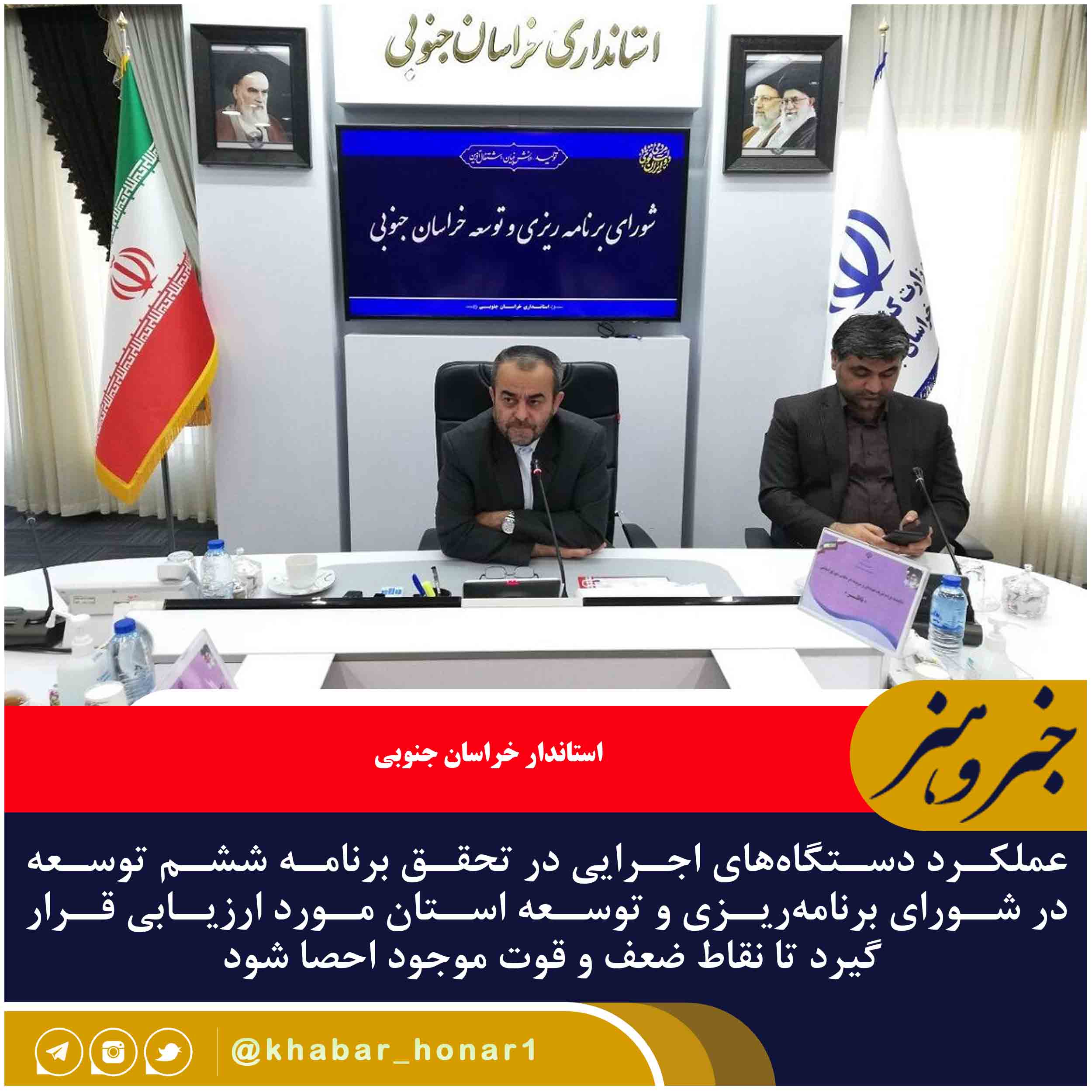 استاندار خراسان جنوبی گفت: عملکرد دستگاههای اجرایی در تحقق برنامه ششم توسعه در شورای برنامهریزی و توسعه استان مورد ارزیابی قرار گیرد تا نقاط ضعف و قوت موجود احصا شود.