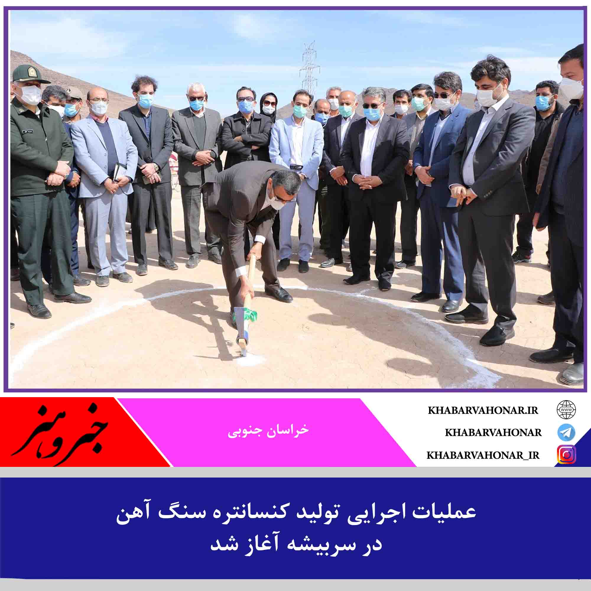 عملیات اجرایی واحد تولید کنسانتره سنگ آهن با سرمایهگذاری بخش خصوصی روز شنبه در شهرستان سربیشه آغاز شد تا به گفته مجریان در سال آینده به بهرهبرداری برسد.