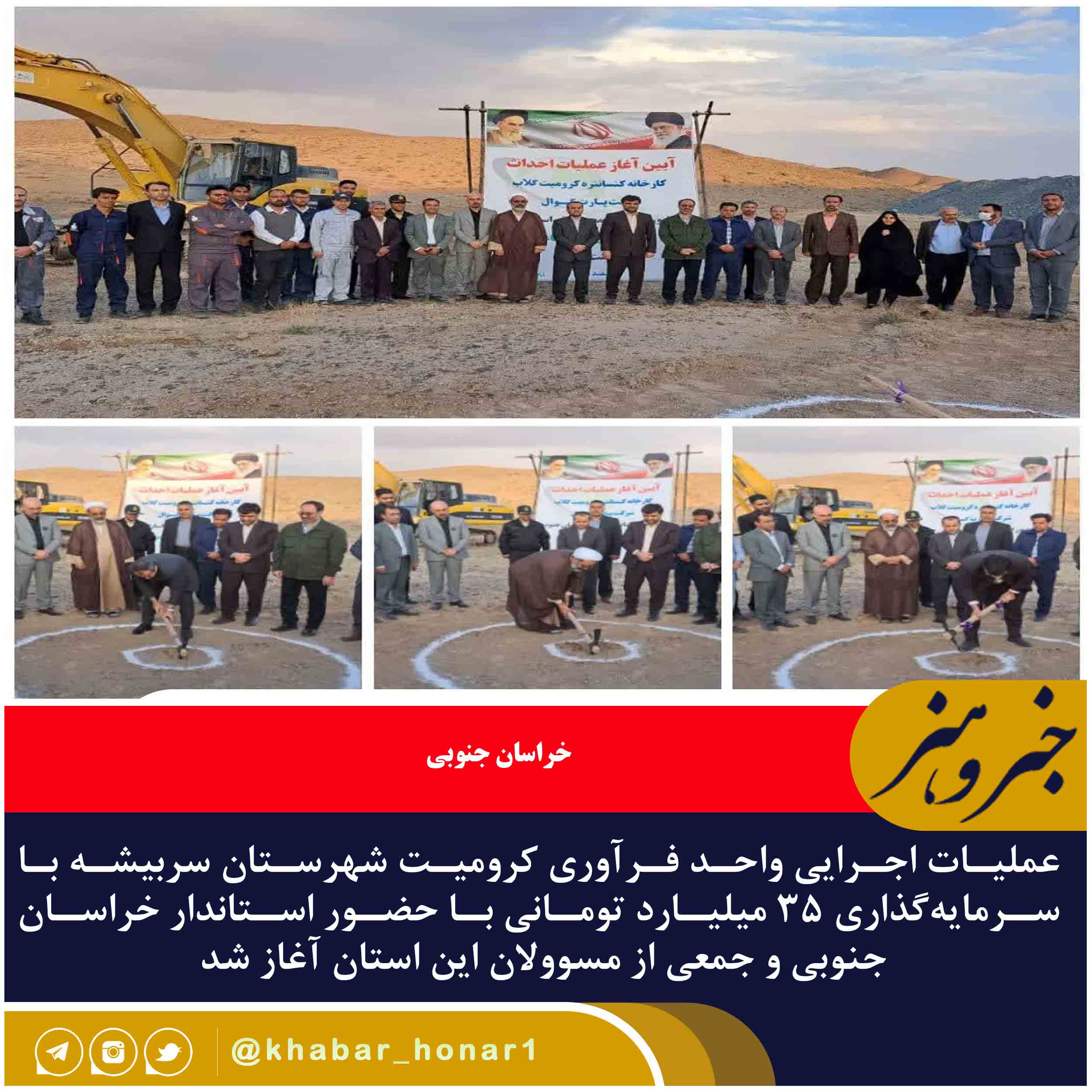 عملیات اجرایی بزرگترین واحد تولیدکننده کنسانتره کرومیت و ماسه کرومیتی خراسان جنوبی با حضور نماینده مردم شهرستانهای نهبندان و سربیشه در مجلس شورای اسلامی، ائمه جمعه، فرماندار، جمعی از مدیران استانی و شهرستانی در سربیشه آغاز شد.