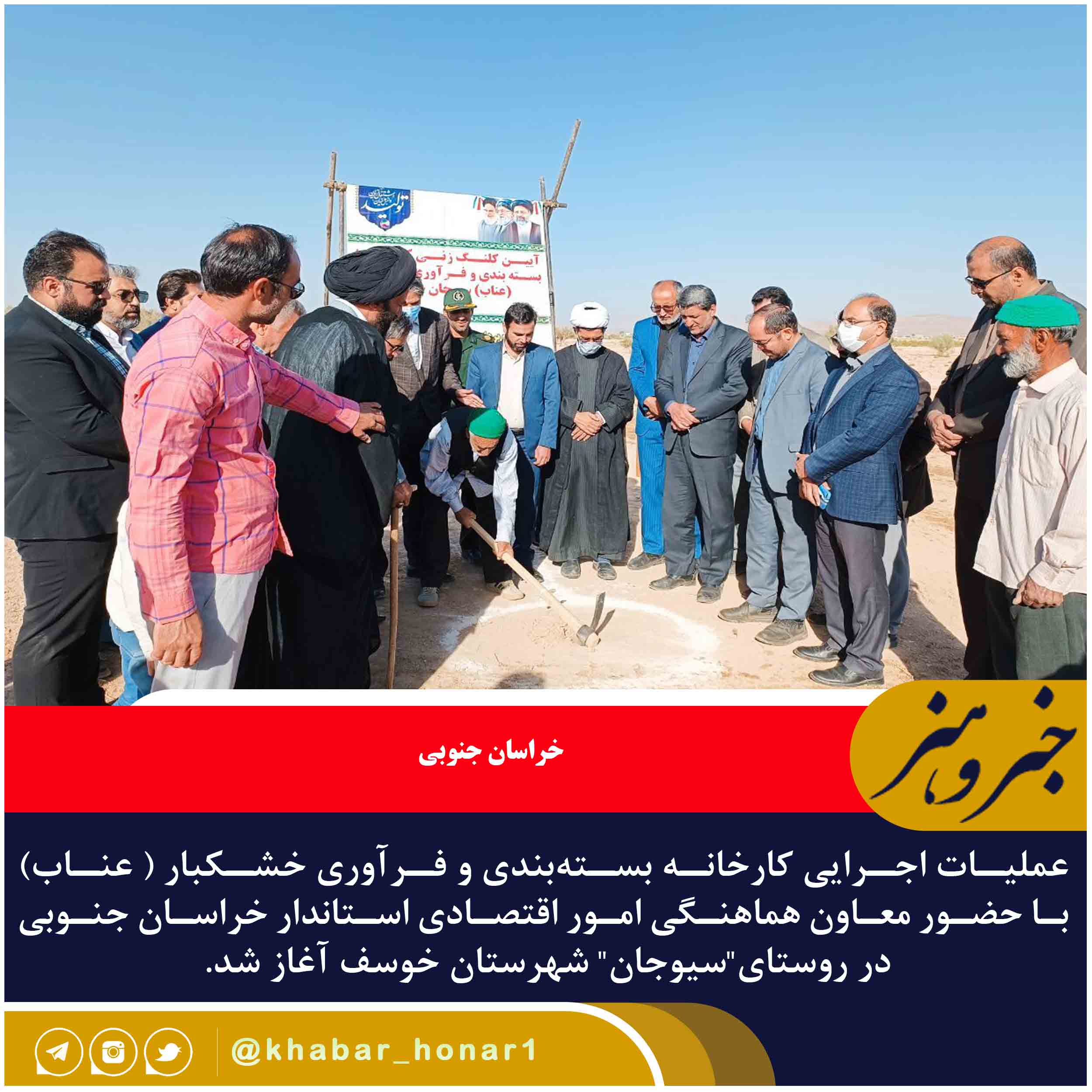 – عملیات اجرایی کارخانه بستهبندی و فرآوری خشکبار ( عناب) با حضور معاون هماهنگی امور اقتصادی استاندار خراسان جنوبی در روستای”سیوجان” شهرستان خوسف آغاز شد.