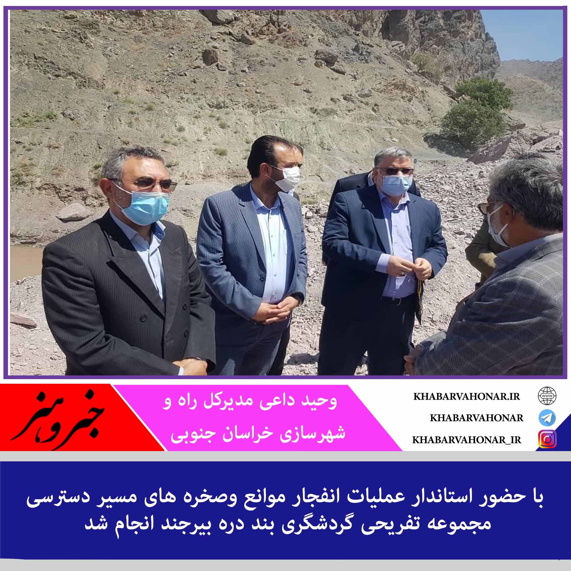 ?وی تصریح کرد: امروز نیز در جهت تسریع در عملیات راهسازی ودسترسی سریعتر عموم مردم به این مکان تفریحی، عملیات انفجار موانع و صخره های مسیر دسترسی باحضور جناب آقای دکتر معتمدیان استاندار خراسان جنوبی،مهندس میرجعفریان معاون هماهنگی امور عمرانی وتعدادی از مدیران استان انجام گرفت .