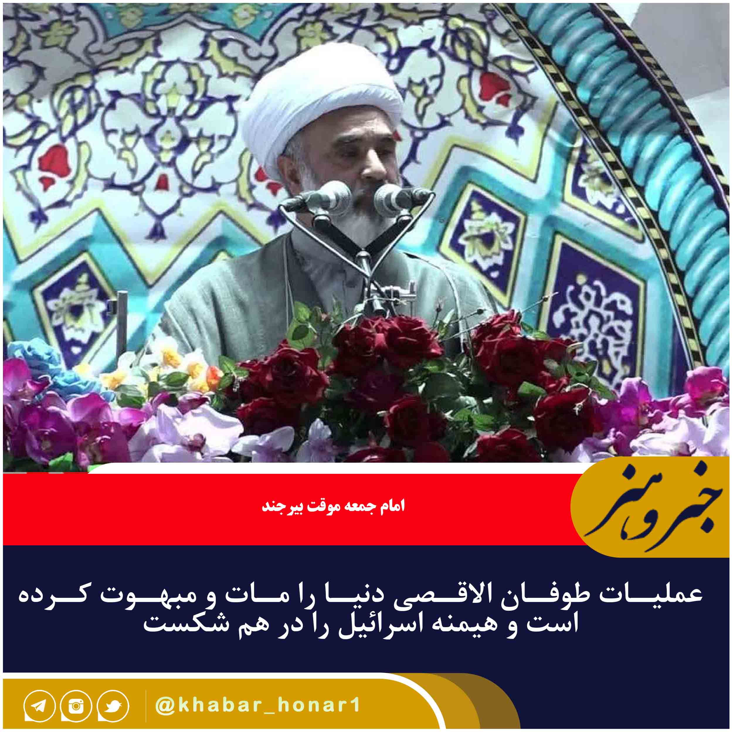 امام جمعه موقت بیرجند گفت: عملیات طوفان الاقصی دنیا را مات و مبهوت کرده است و هیمنه اسرائیل را در هم شکست.