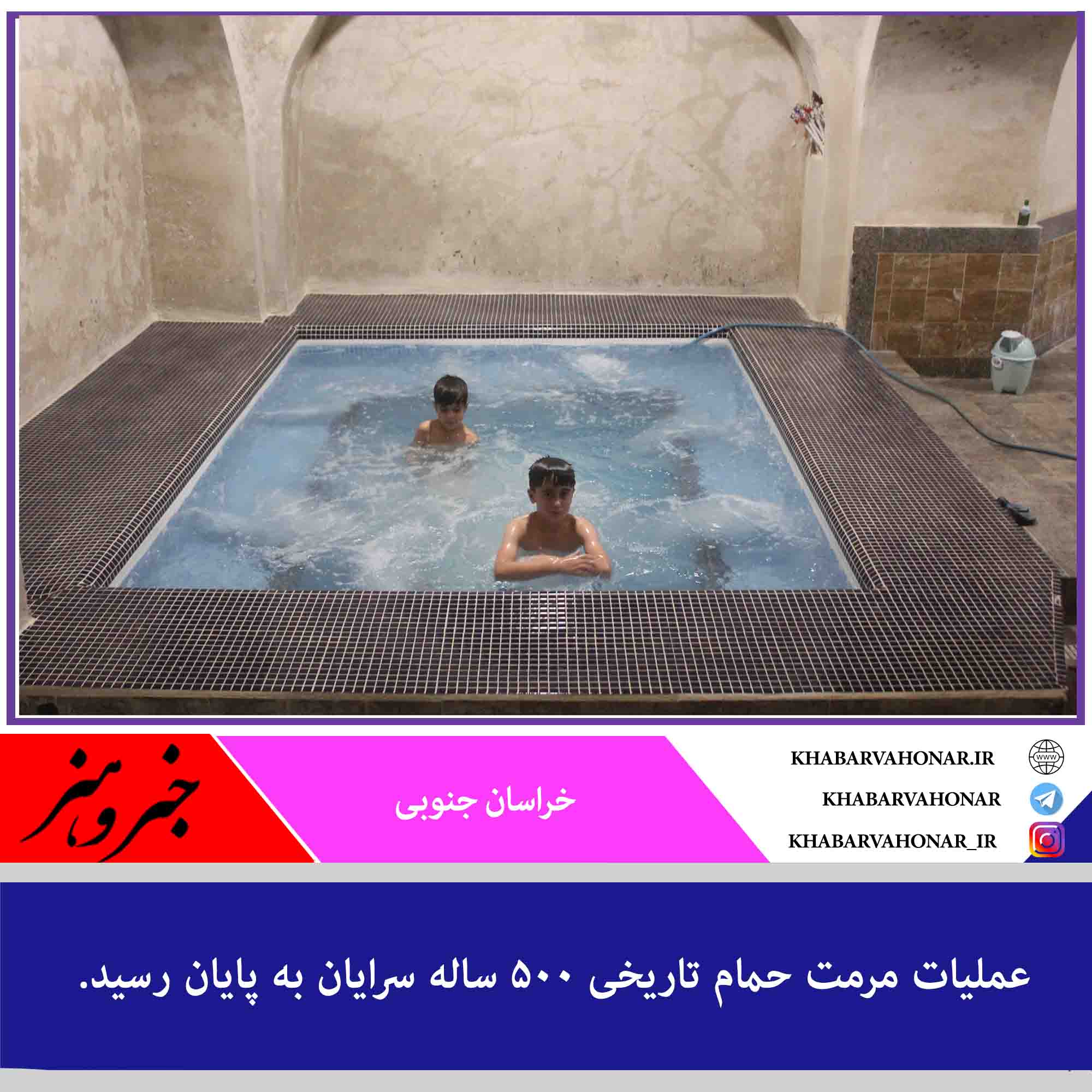 وی جمع آوری طاقها و پوشش سقف در قسمتهای آسیب دیده و اجرای مجدد، ساخت سرویس بهداشتی، اصلاح سیستم فاضلاب، بازسازی دوش متناسب با معماری سنتی، اجرای گرمایش از کف، لوله کشی تاسیسات آبی، اجرای سنگ فرش کف و دیوارهها تا ارتفاع یک متر، مرمت سر در ورودی و بازسازی کامل ورودی حمام کوچک، آجر فرش کف رختکن و ورودی ها، تکمیل فضای حمام ترکی، احیاء خزینه با استفاده از تکنولوژیهای نوین، اصلاح سیستم تامین انرژی از نفت گاز و سفید به گاز شهری، نصب تجهیزات موتورخانه اعم از منابع ذخیره آب، پمپ ها، اجرای سیستم برق از جمله اقدامات مرمتی صورت گرفته در این بنای تاریخی است.