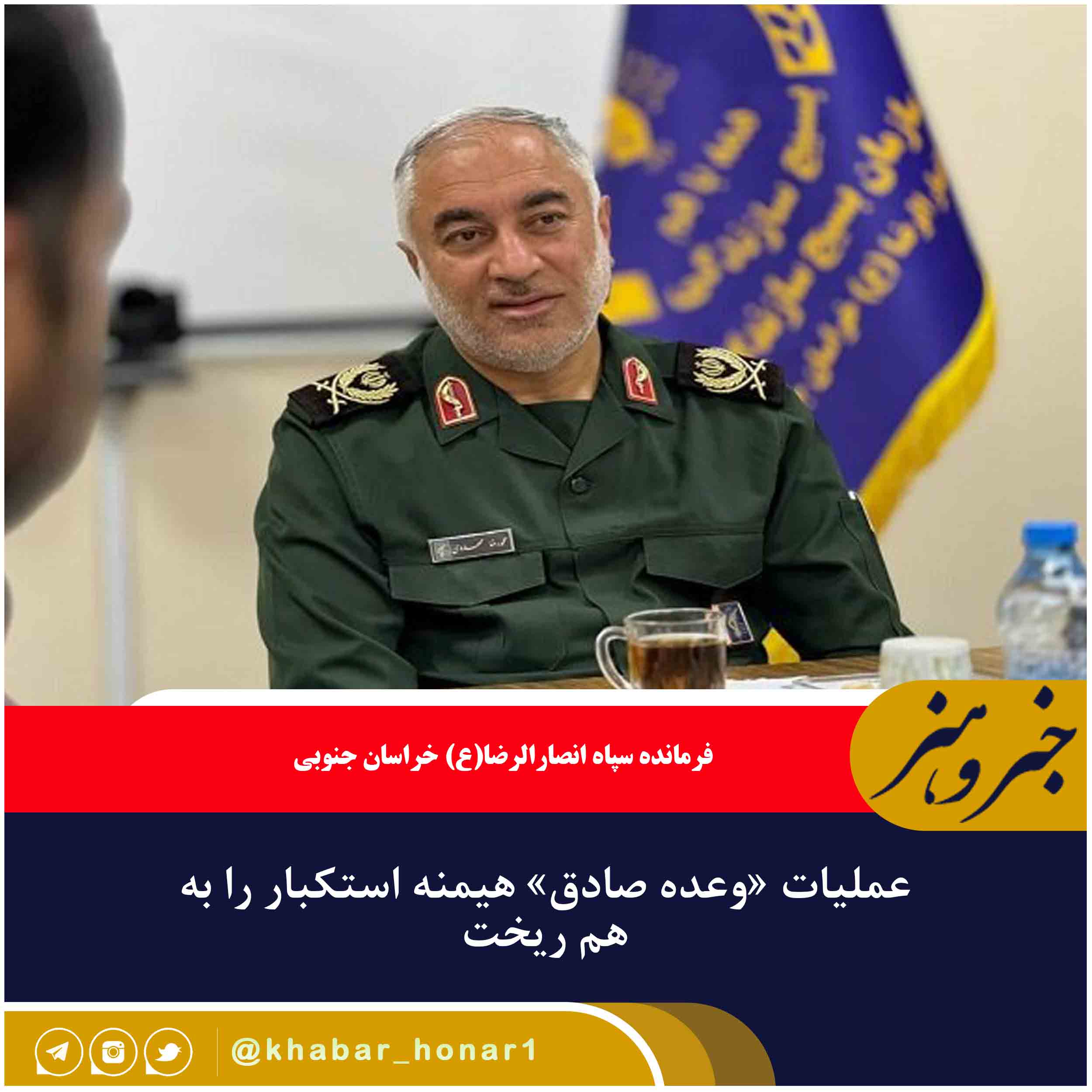 فرمانده سپاه انصارالرضا(ع) با بیان اینکه عملیات وعده صادق هیمنه استکبار را به هم ریخت، گفت:رژیم صهیونیستی برای همیشه از بین خواهد رفت.