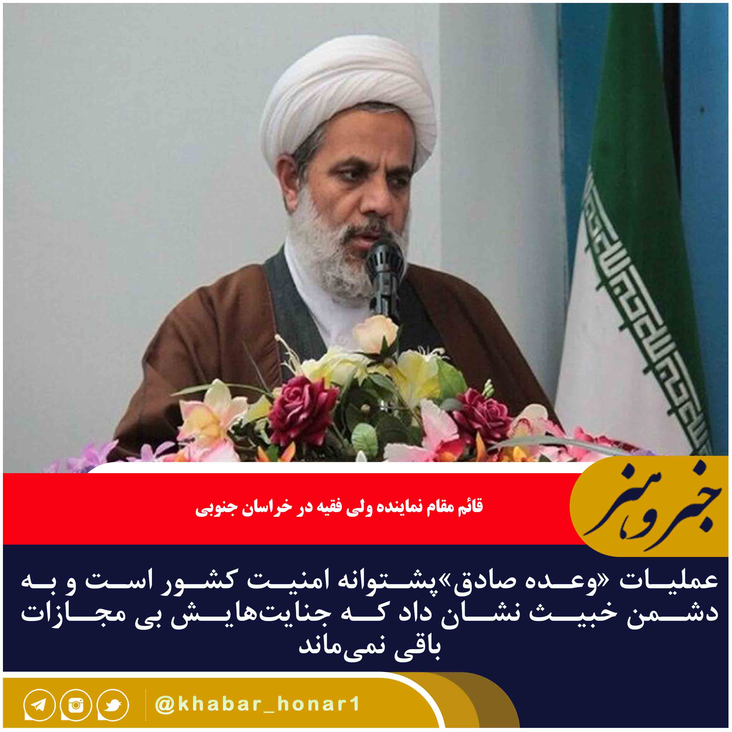 قائم مقام نماینده ولی فقیه در خراسان جنوبی گفت: عملیات «وعده صادق»پشتوانه امنیت کشور است و به دشمن خبیث نشان داد که جنایتهایش بی مجازات باقی نمیماند.