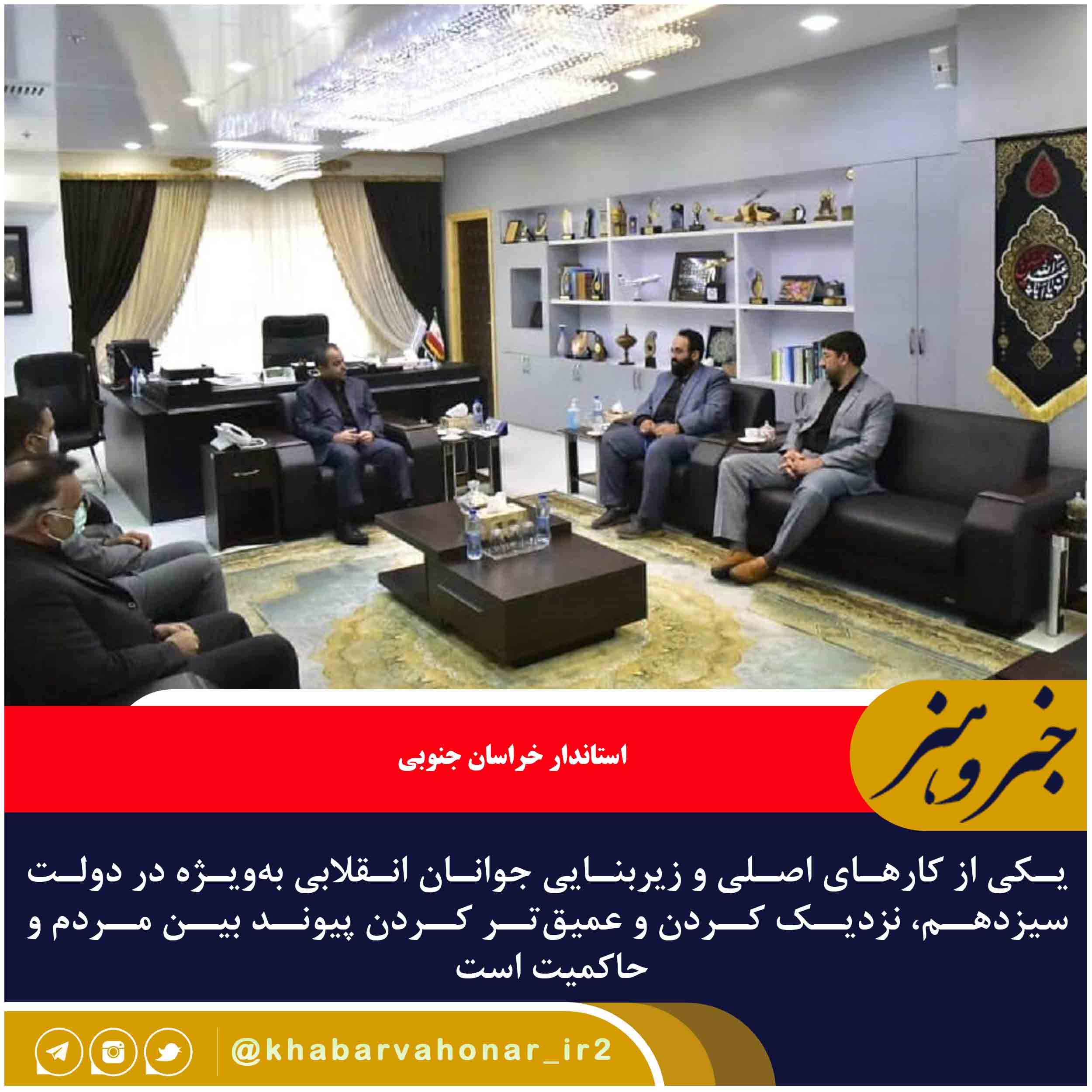استاندار خراسان جنوبی گفت: یکی از کارهای اصلی و زیربنایی جوانان انقلابی بهویژه در دولت سیزدهم، نزدیک کردن و عمیقتر کردن پیوند بین مردم و حاکمیت است.