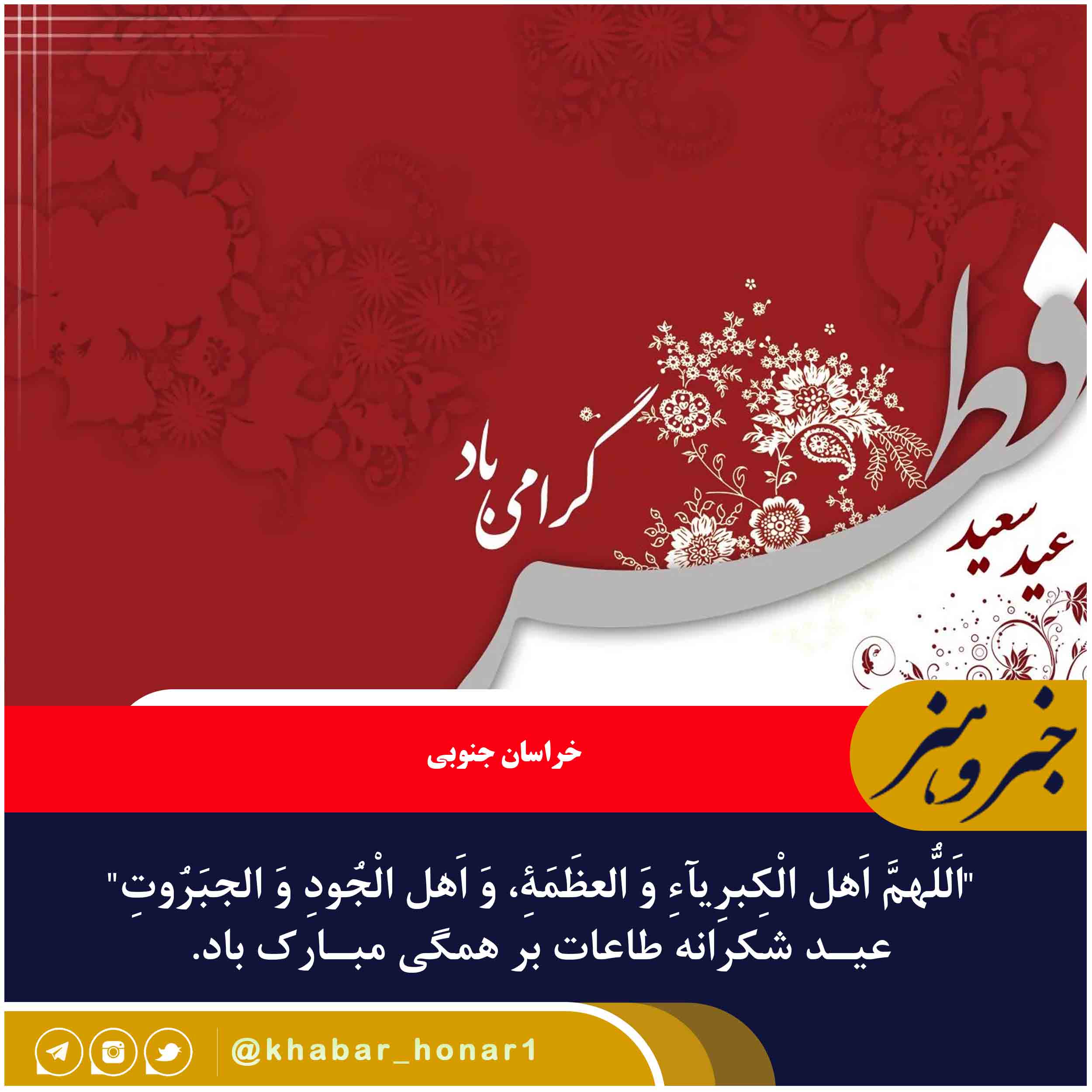“اَللّهُمَّ اَهْلَ الْکِبرِیآءِ وَ الْعَظَمَهِ، وَ اَهْلَ الْجُودِ وَ الْجَبَرُوتِ” عیـد شکرانه طاعات بر همگی مبـارک باد.