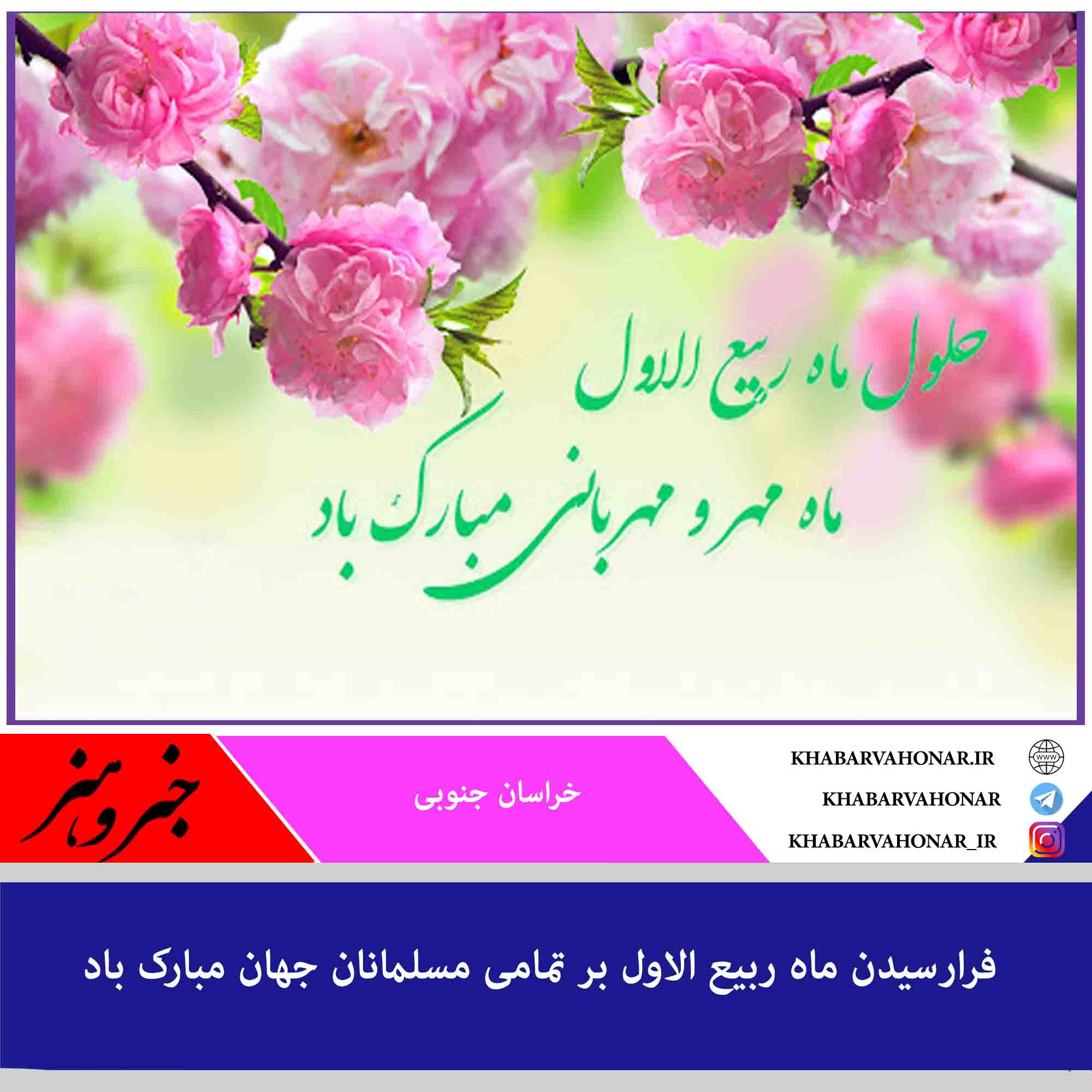 حلول ماه ربیع الاول ماه جشن و سرور اهل البیت ( ع ) را به تمامی مسلمین تبریک می گوییم .
