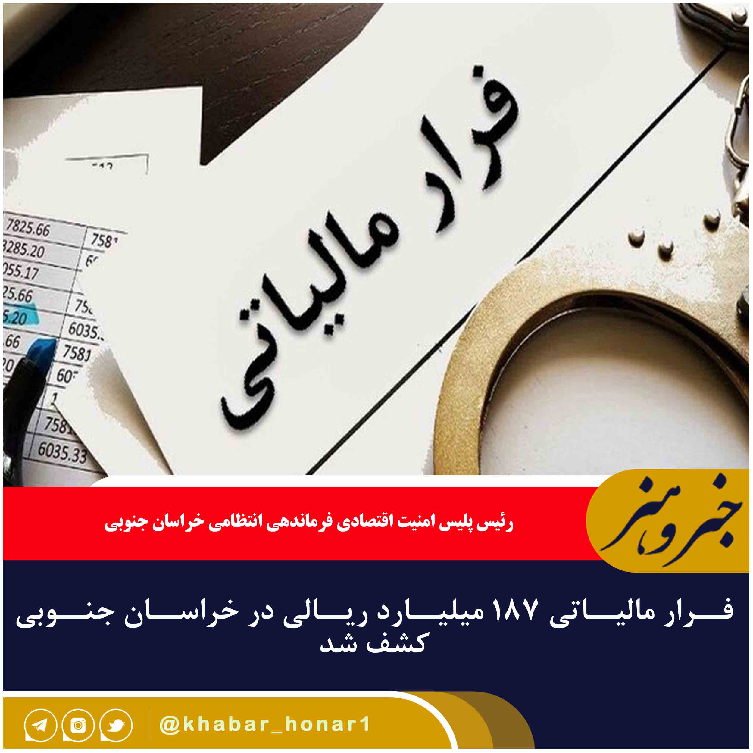 رئیس پلیس امنیت اقتصادی فرماندهی انتظامی خراسان جنوبی از کشف فرار مالیاتی به ارزش ۱۸۷ میلیارد ریال خبر داد و گفت: در این رابطه یک متهم دستگیر شده است.