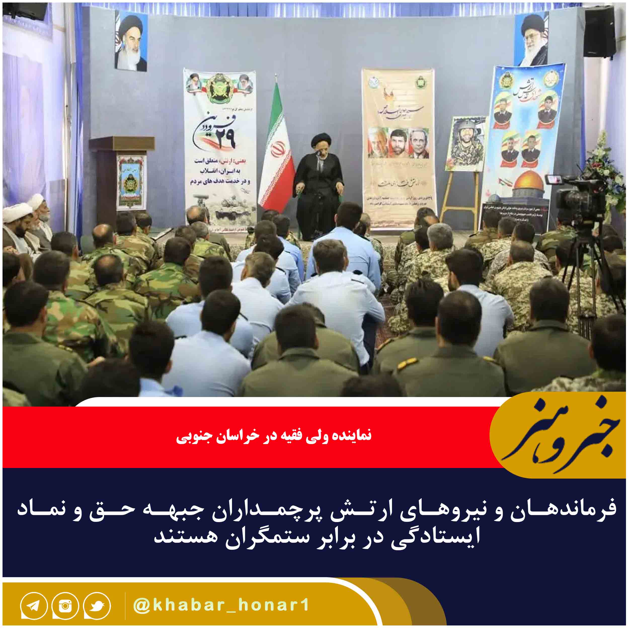 نماینده ولی فقیه در خراسان جنوبی و امام جمعه بیرجند با اشاره به جایگاه دینی، انسانی و افتخارآمیز ارتش گفت: فرماندهان ارتش پرچمداران جبهه حق و نماد ایستادگی در برابر ستمگران هستند.