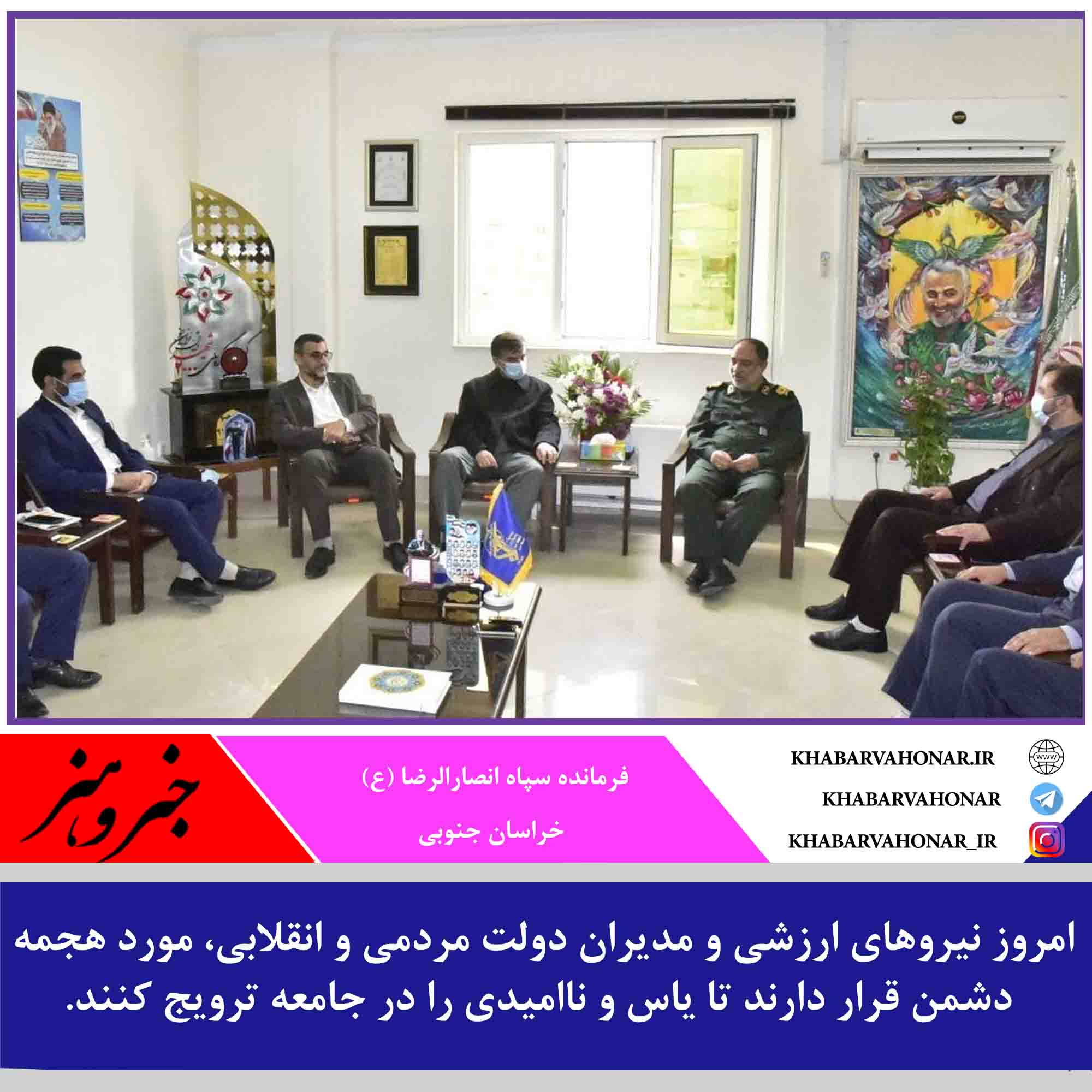 فرمانده سپاه انصارالرضا (ع) خراسان جنوبی گفت: امروز نیروهای ارزشی و مدیران دولت مردمی و انقلابی، مورد هجمه دشمن قرار دارند تا یاس و ناامیدی را در جامعه ترویج کنند.