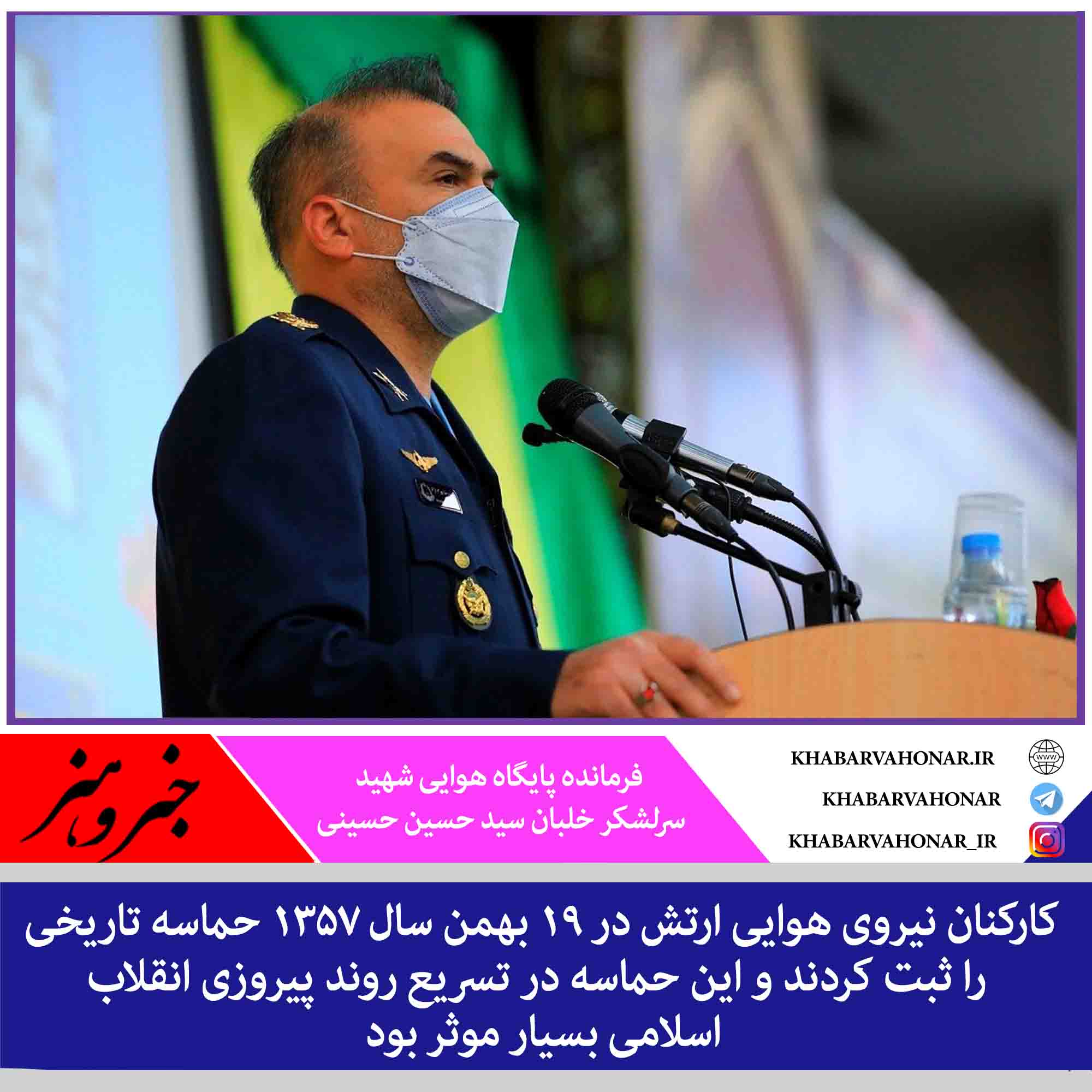 فرمانده پایگاه هوایی شهید سرلشکر خلبان سید حسین حسینی گفت: کارکنان نیروی هوایی ارتش در ۱۹ بهمن سال ۱۳۵۷ حماسه تاریخی را ثبت کردند و این حماسه در تسریع روند پیروزی انقلاب اسلامی بسیار موثر بود.
