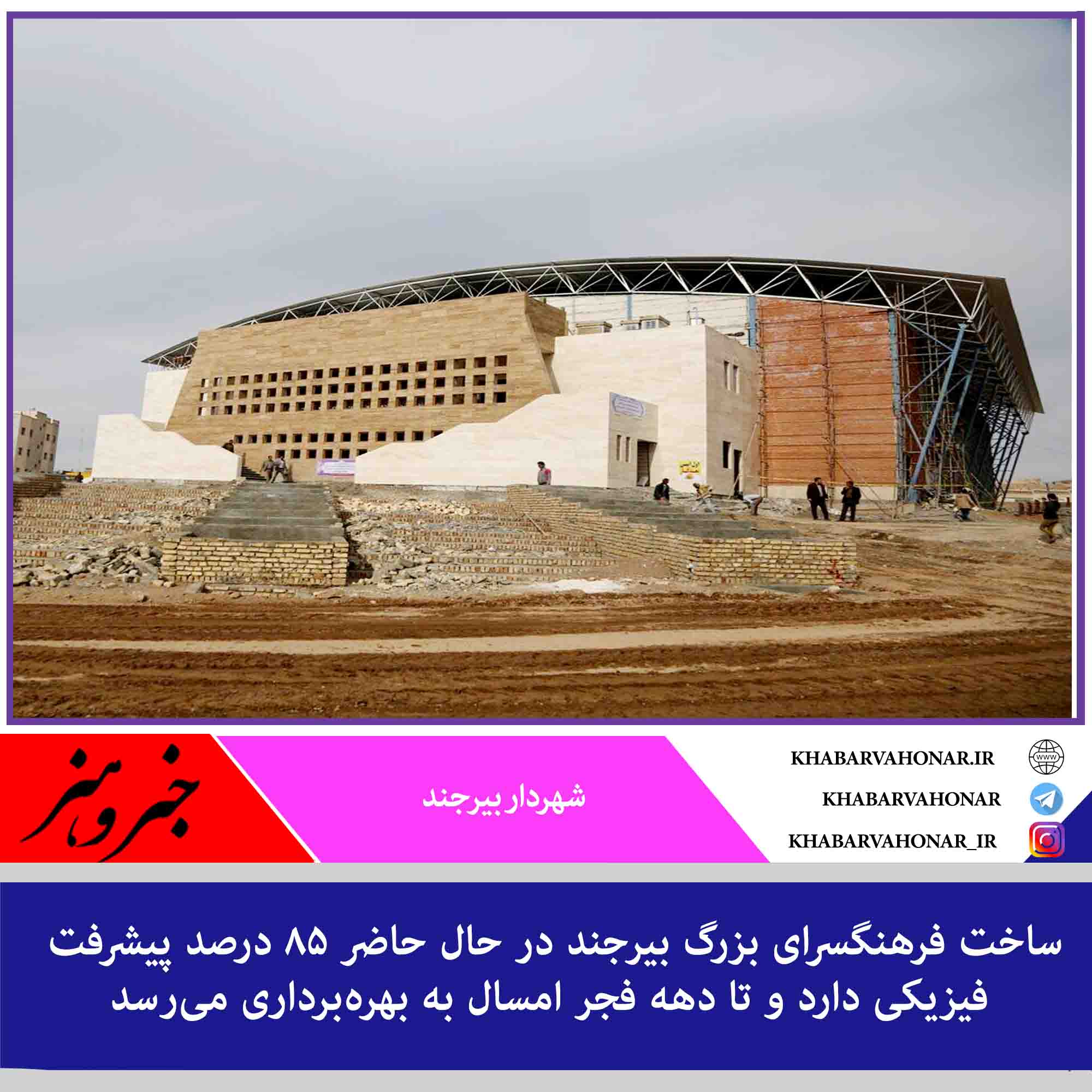 شهردار بیرجند گفت: ساخت فرهنگسرای بزرگ بیرجند در حال حاضر ۸۵ درصد پیشرفت فیزیکی دارد و تا دهه فجر امسال به بهرهبرداری میرسد.