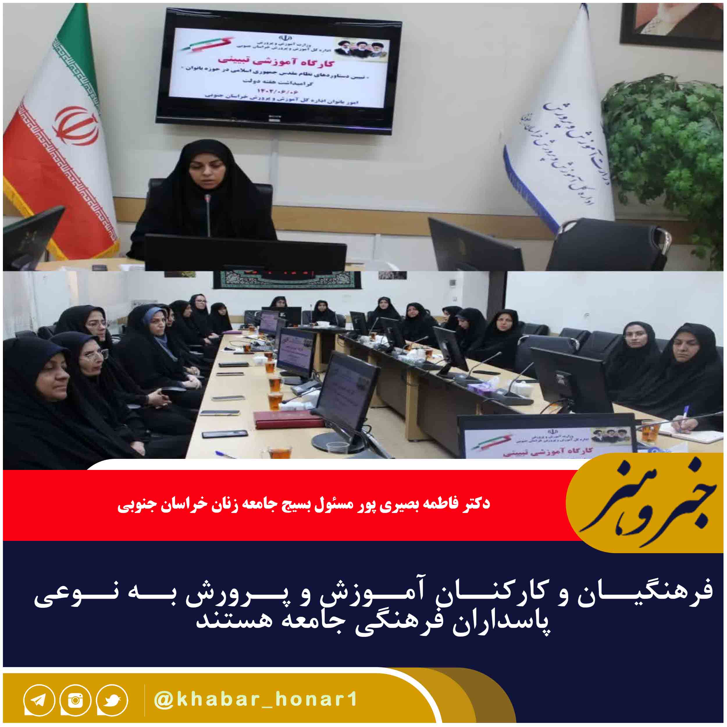 دکتر فاطمه بصیری پور مسئول بسیج جامعه زنان خراسان جنوبی در جمع بانوان شاغل در اداره کل آموزش و پرورش خراسان جنوبی ودر اولین کارگاه آموزشی جهادتبیین با بیان اینکه مسائل مرتبط با آموزش و پرورش دغدغه همه ما است گفت: