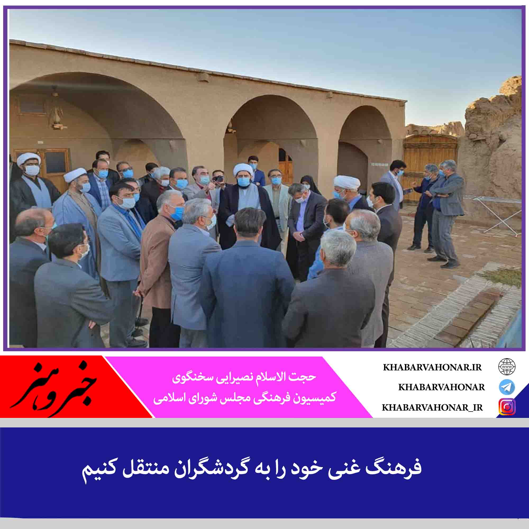 حجت الاسلام نصیرایی سخنگوی کمیسیون فرهنگی مجلس شورای اسلامی در بازدید از اقامتگاه بوم گردی روستای هدف گردشگری کریت شهرستان طبس گفت: صنعت گردشگری در منطقه نیازمند نگاه ویژه و ترسیم نقشه راه برای فرهنگ سازی و بومی سازی است تا در کنار حفظ مؤلفههای اسلامی به رونق اشتغال و درآمد زایی کمک کند.
