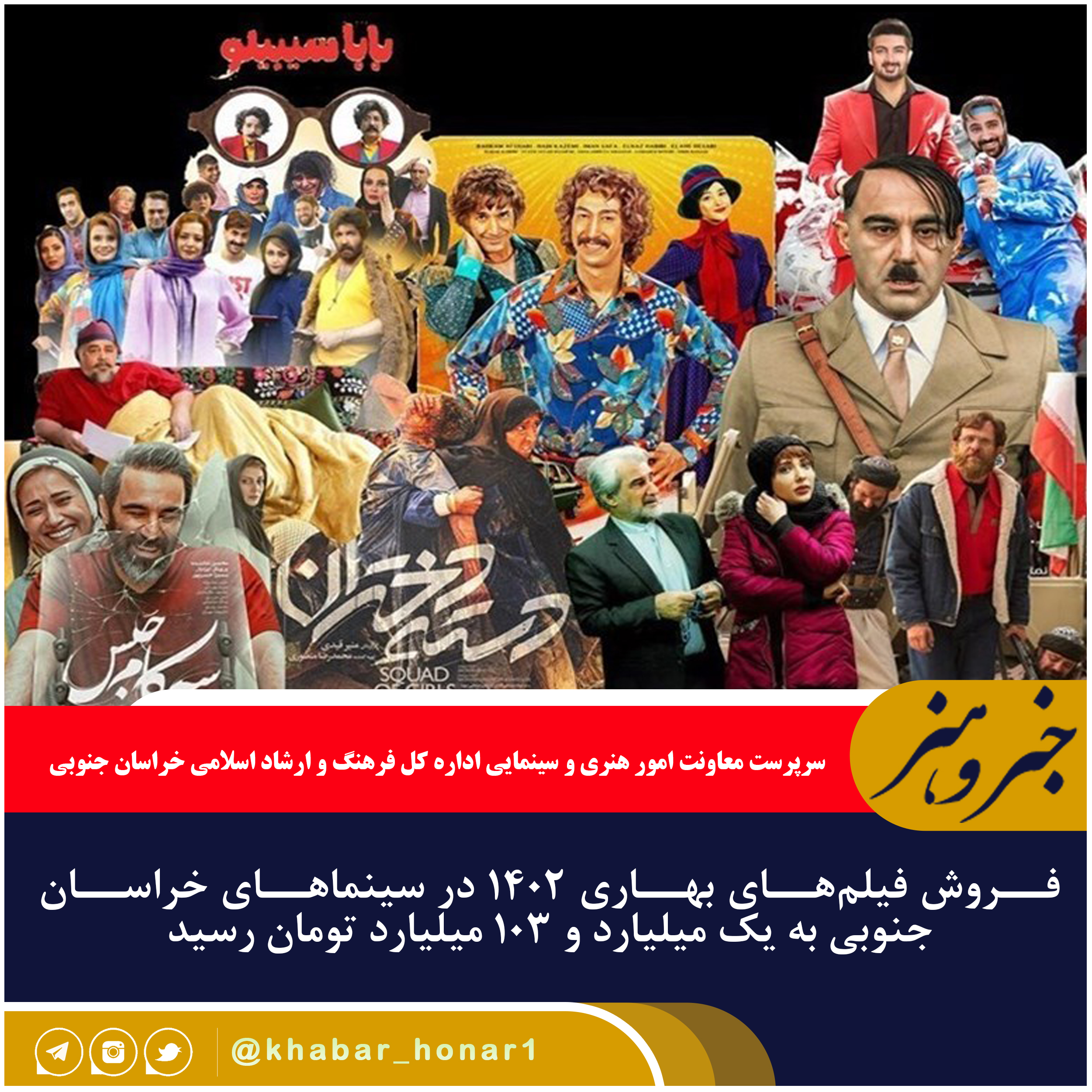 فروش فیلمهای بهاری ۱۴۰۲ در سینماهای خراسان جنوبی به یک میلیارد و ۱۰۳ میلیارد تومان رسید.