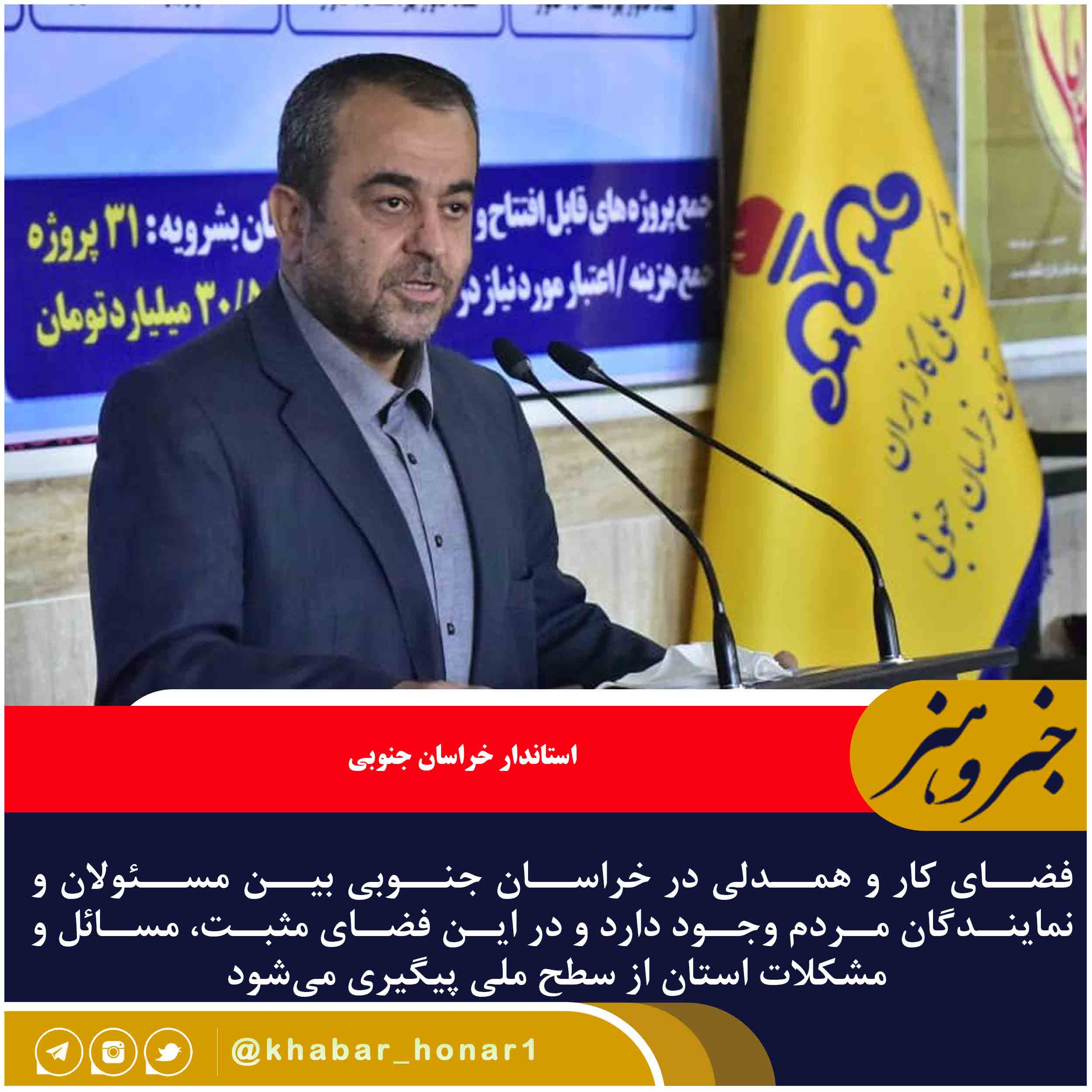 استاندار خراسان جنوبی گفت: فضای کار و همدلی در خراسان جنوبی بین مسئولان و نمایندگان مردم وجود دارد و در این فضای مثبت، مسائل و مشکلات استان از سطح ملی پیگیری میشود.