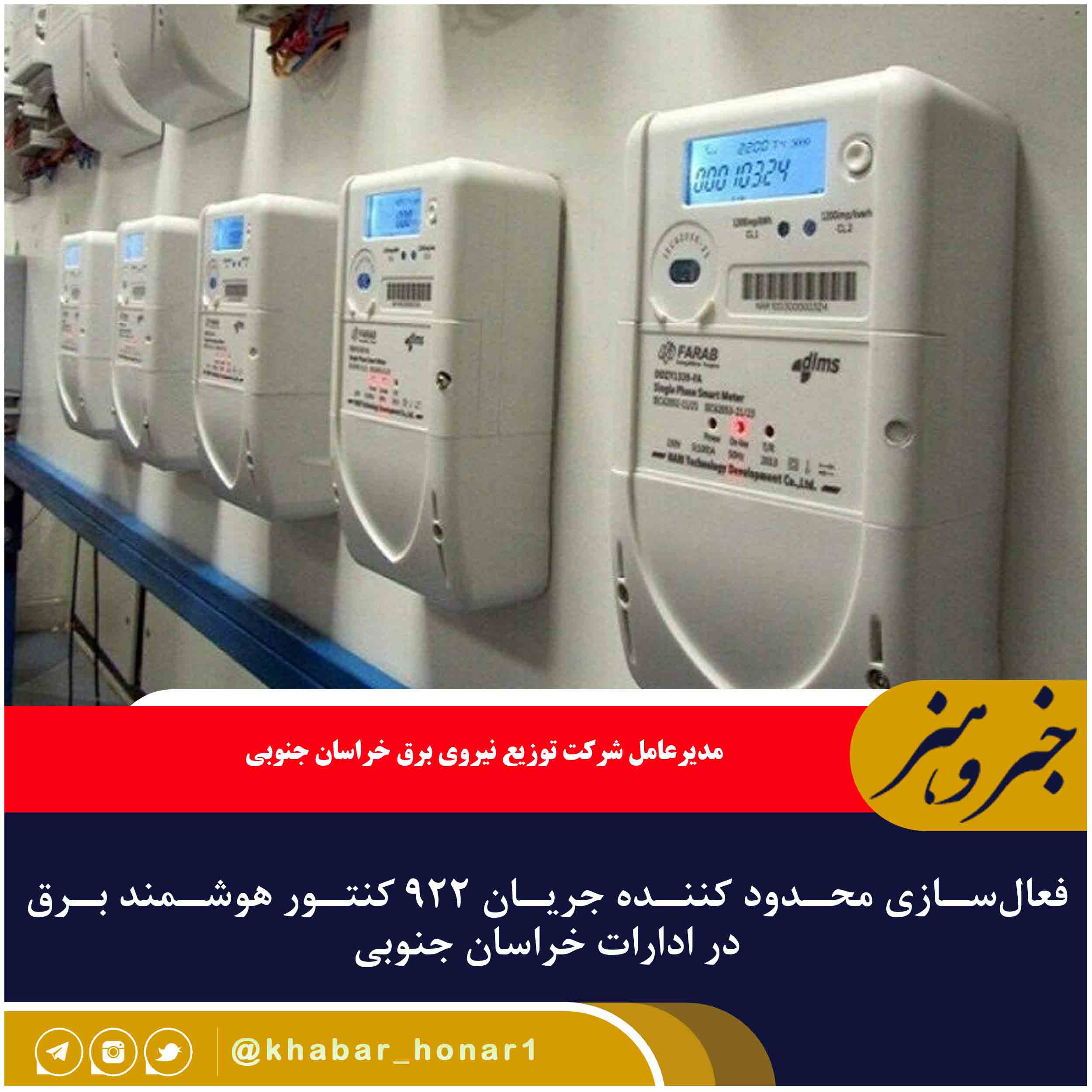مدیرعامل شرکت توزیع نیروی برق خراسان جنوبی از فعال‌سازی محدود کننده‌ جریان ۹۲۲ کنتور هوشمند برق در ادارات استان خبر داد.