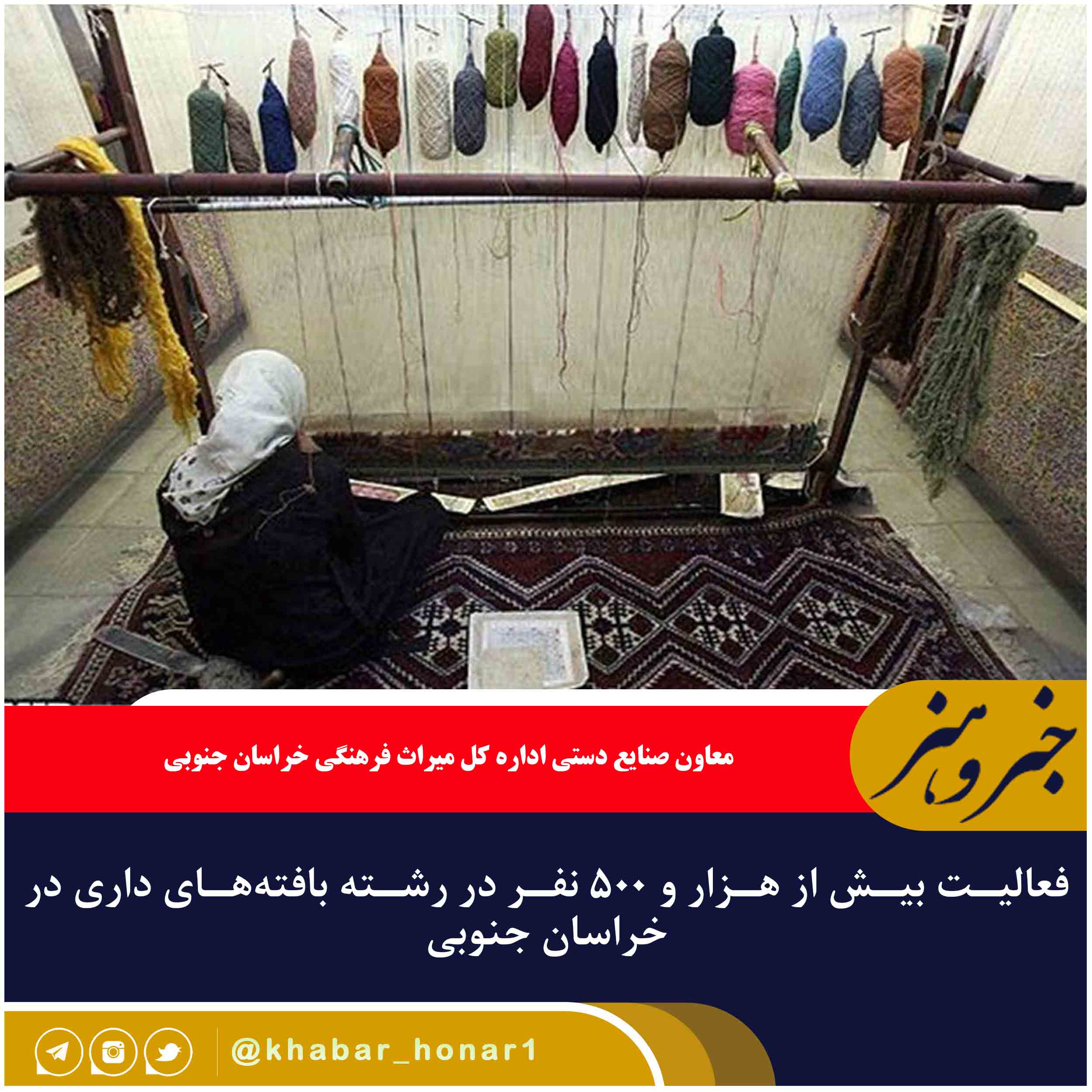 معاون صنایع دستی اداره کل میراث فرهنگی، گردشگری و صنایع دستی خراسان جنوبی گفت: بیش از هزار و ۵۰۰ نفر در استان در رشته بافتههای داری فعالیت میکنند.