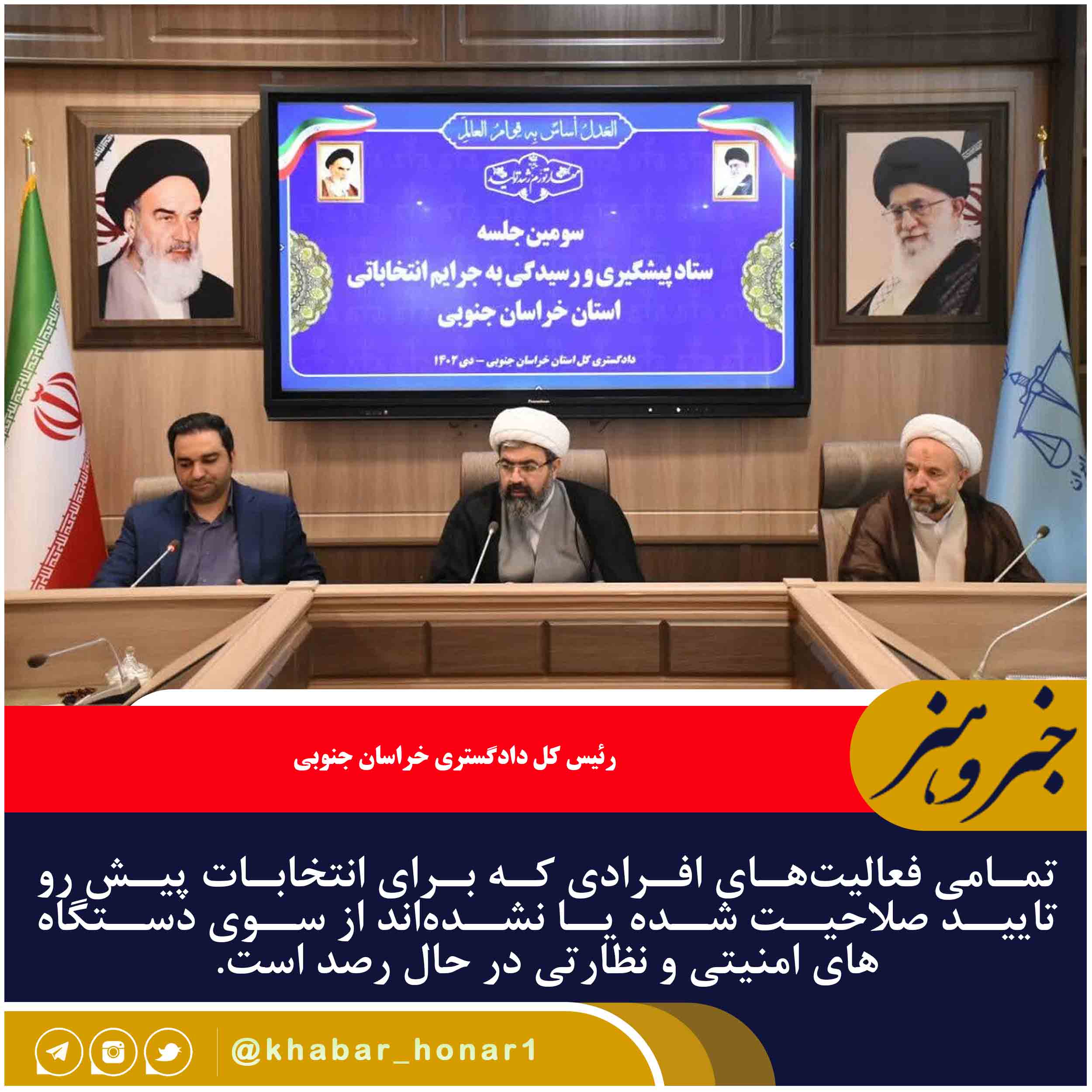 رئیس کل دادگستری خراسان جنوبی تاکید کرد: باید تلاش کنیم سطح آگاهی و دانش همه اقشار جامعه و مجریان انتخابات را افزایش دهیم تا کمترین آسیب، جرم و تخلف انتخاباتی را شاهد باشیم.