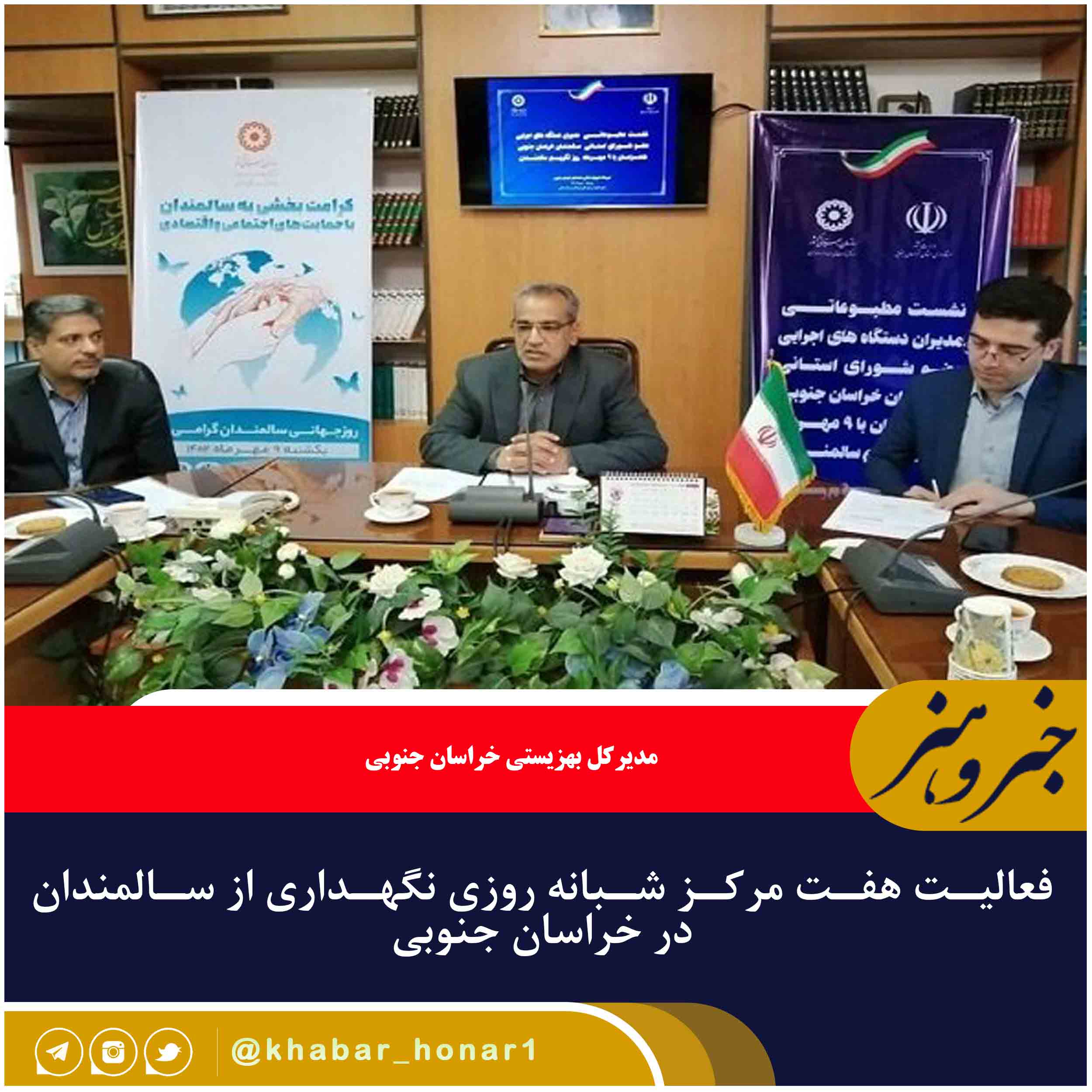 مدیرکل بهزیستی خراسان جنوبی با اشاره به اینکه هفت مرکز شبانه روزی در خراسان جنوبی از ۱۶۰ سالمند نگهداری میکنند، گفت: ۲۱۰ سالمند خراسان جنوبی هم در پنج مرکز روزانه نگهداری میشوند.