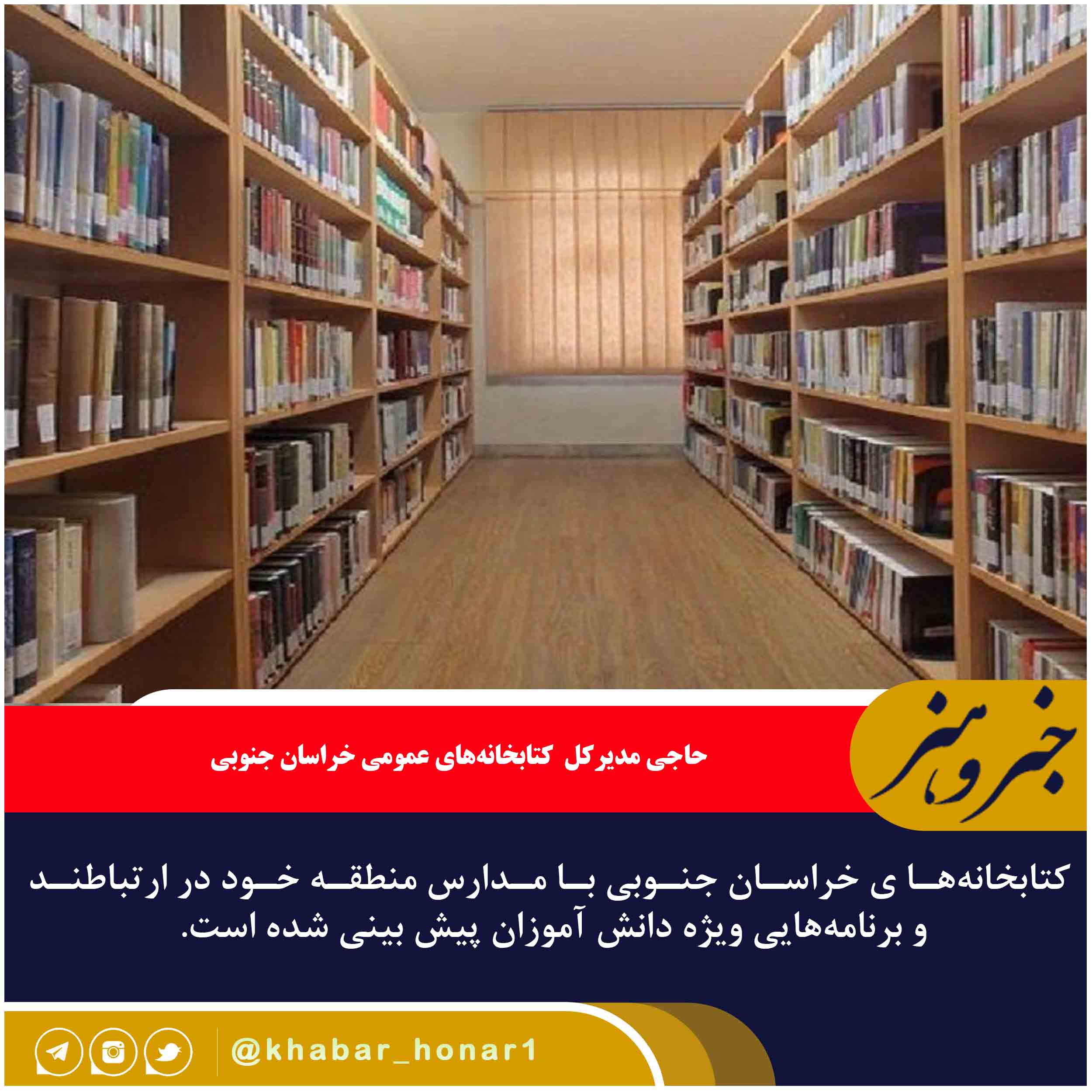 مدیرکل کتابخانههای عمومی خراسان جنوبی گفت: کتابخانهها ی خراسان جنوبی با مدارس منطقه خود در ارتباطند و برنامههایی ویژه دانش آموزان پیش بینی شده است.
