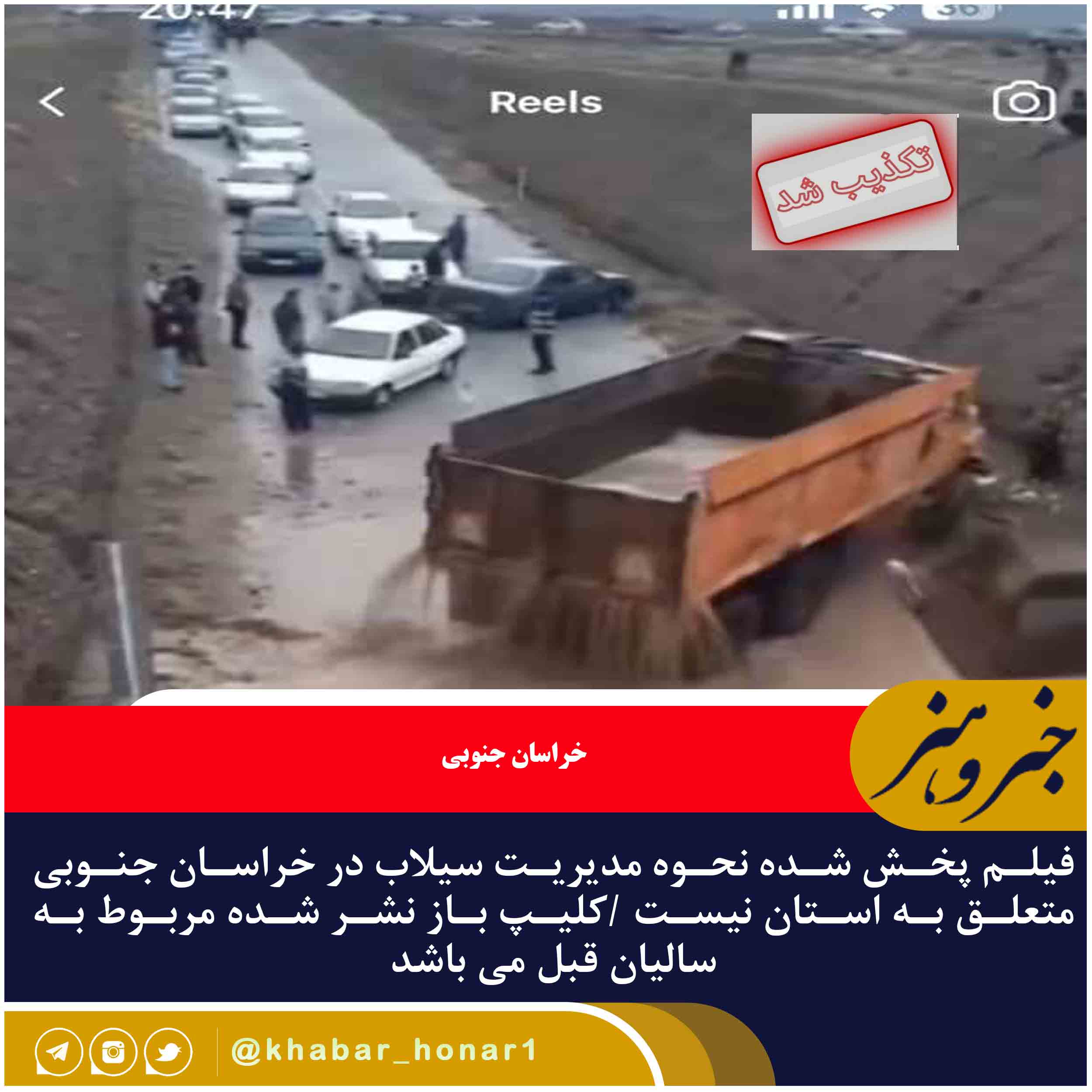 فیلم پخش شده نحوه مدیریت سیلاب در خراسان جنوبی متعلق به استان نیست /کلیپ باز نشر شده مربوط به سالیان قبل می باشد