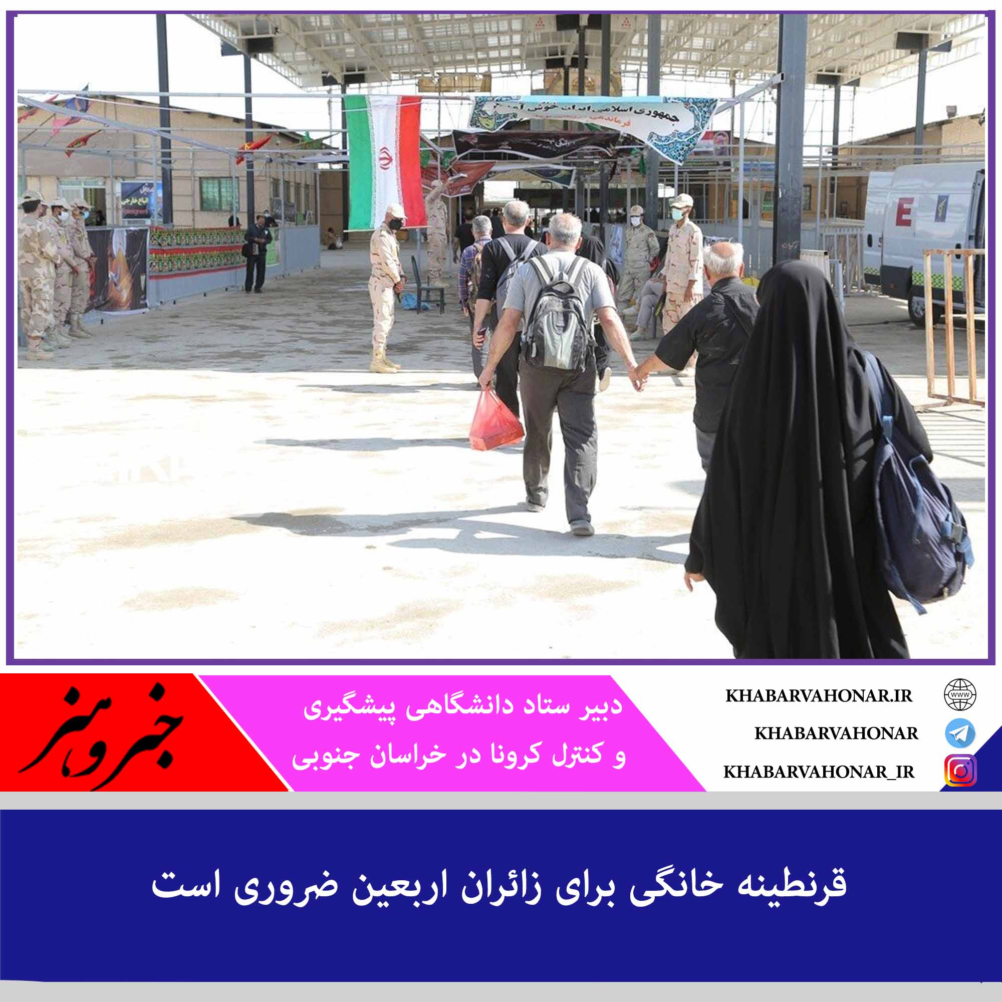 دبیر ستاد دانشگاهی پیشگیری و کنترل کرونا در خراسان جنوبی گفت: با توجه به بازگشت زائران اربعین به استان توصیه میشود قرنطینه خانگی را رعایت کنند.